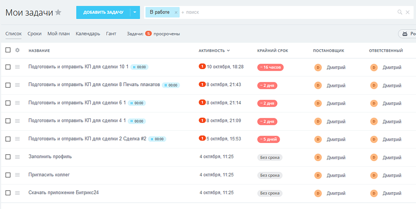 Во всех направлениях сделок и на этапах лидов добавлены роботы, ставящие соответствующие задачи Вашим менеджерам, уведомляющие их о необходимости в дальнейших действиях, а также роботы контроля сроков выполнения работы. С полным списком роботов Вы можете ознакомиться на лендинге отраслевого решения.