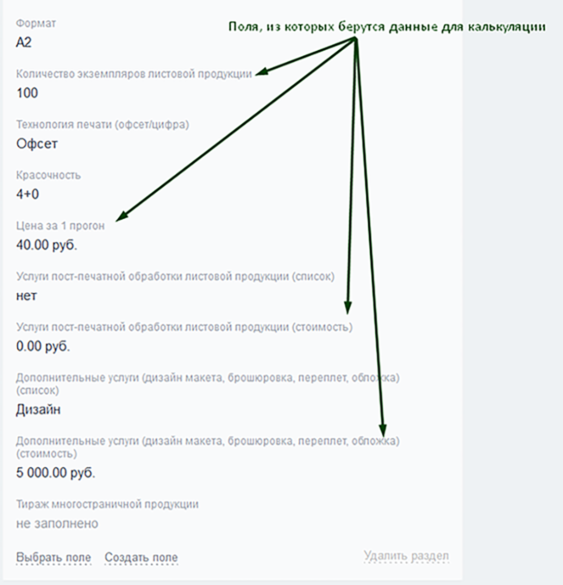 Расчет стоимости заказа полиграфических услуг – комплексная задача, зачастую требующая значительных затрат времени из-за высокого количества переменных. В нашем отраслевом решении представлен упрощенный калькулятор суммы заказа, основанный на инструменте Битрикс24 «Бизнес-процессы», который доступен на тарифах «Команда» и «Компания». Данные для расчета берутся системой из полей в карточке лида или сделки при каждом их изменении. Менеджер вручную заносит соответствующие числовые значения в эти поля.