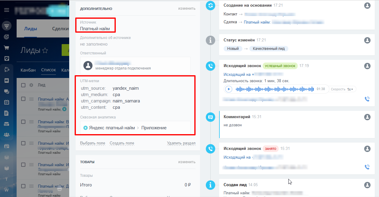 Своевременная обработка поступающих лидов позволяет парку повысит конверсию выхода водителя на линию, а добавление источника и utm меток позволит рассчитать показатели окупаемости данного канала привлечения водителей и в полной мере вести сквозную аналитику.