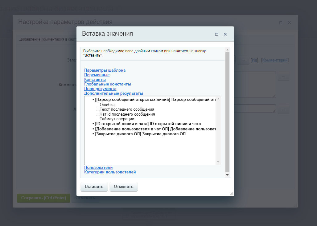 - в диалог добавлялся нужный сотрудник: продавец, аккаунт менеджер, тех поддержка (с помощью активити "Добавление пользователя в чат ОЛ")