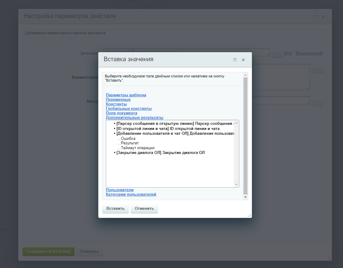 Для настройки полноценной автоматизации работы с диалогами открытых линий рекомендуем к установке другие наши активити: Парсер сообщений открытых линий, Добавление пользователя в чат ОЛ, ID открытой линии и чата, Переадресация диалога ОЛ