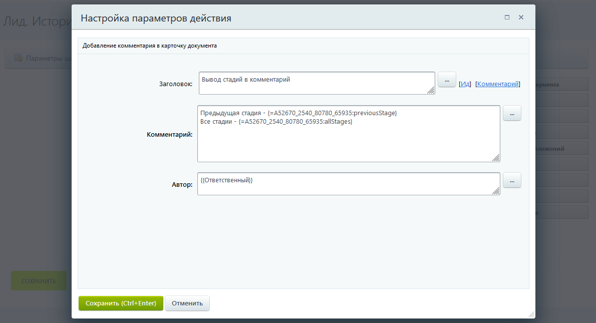Помимо этого активити возвращает полный список кодов стадий, через которые проходил Лид или Сделка, в обратном хронологическом порядке.