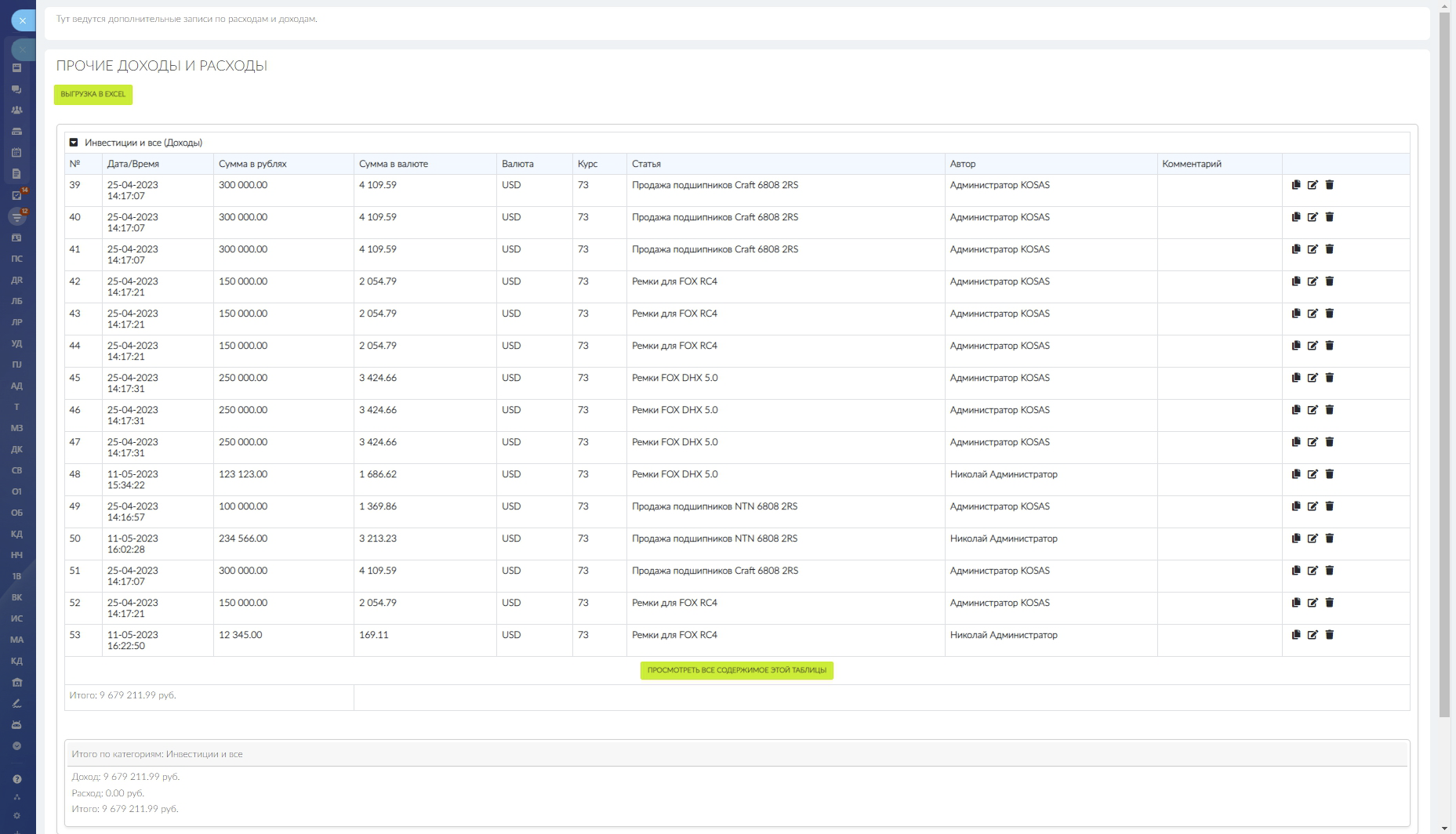 - Ведение учета дохода/расхода в рамках собственной компании;