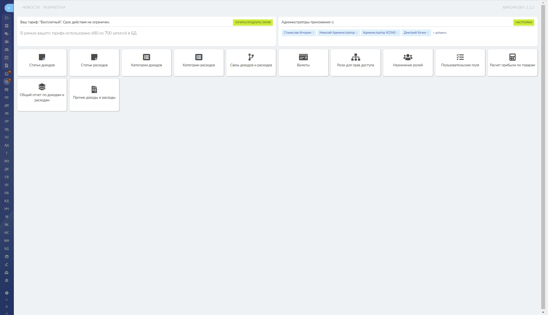 Доходы и расходы - позволяет вести учет доходов и расходов в рамках сделки, а так же получать отчет по сделкам, которые привязаны к одной Компании.