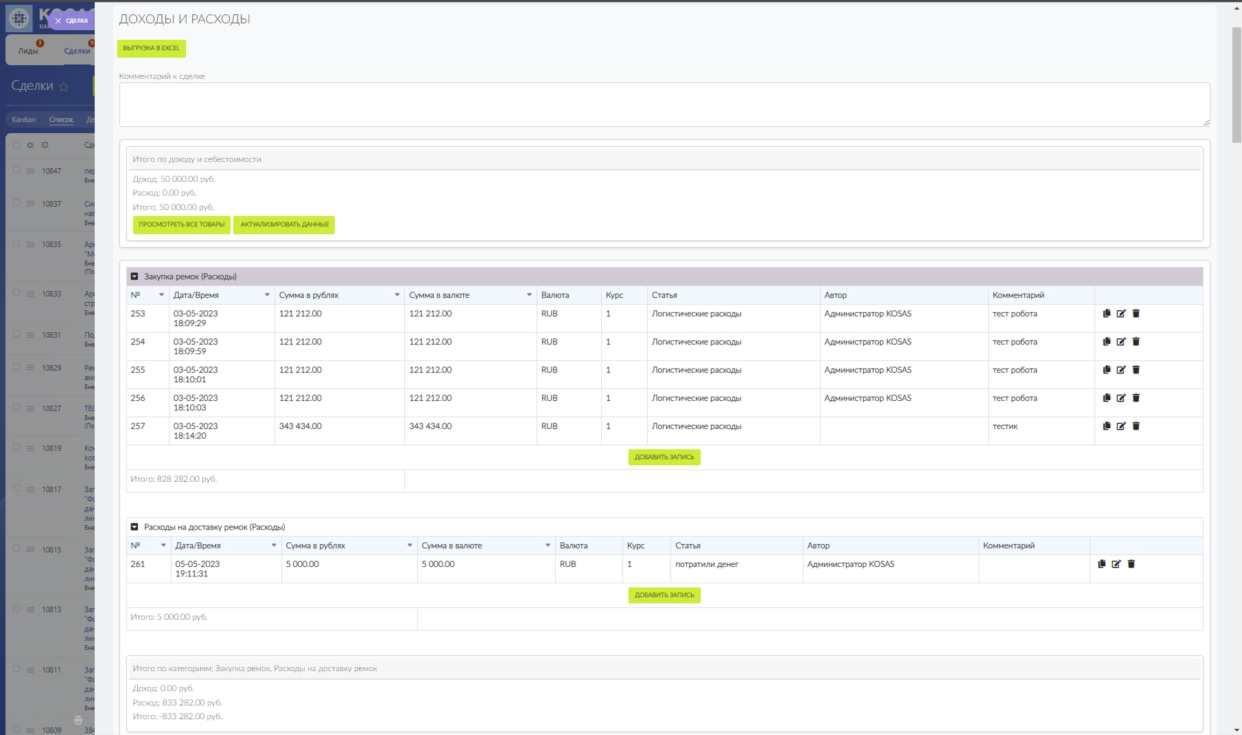 Доходы и расходы в CRM