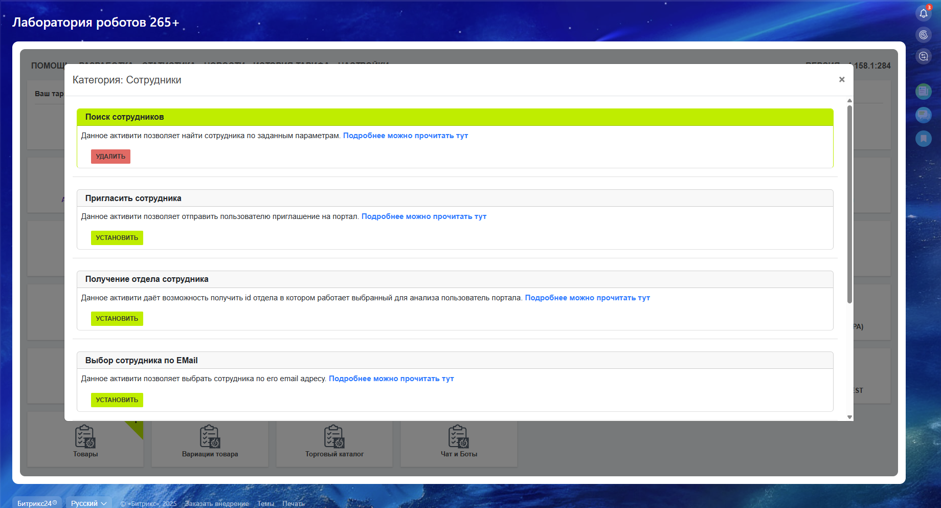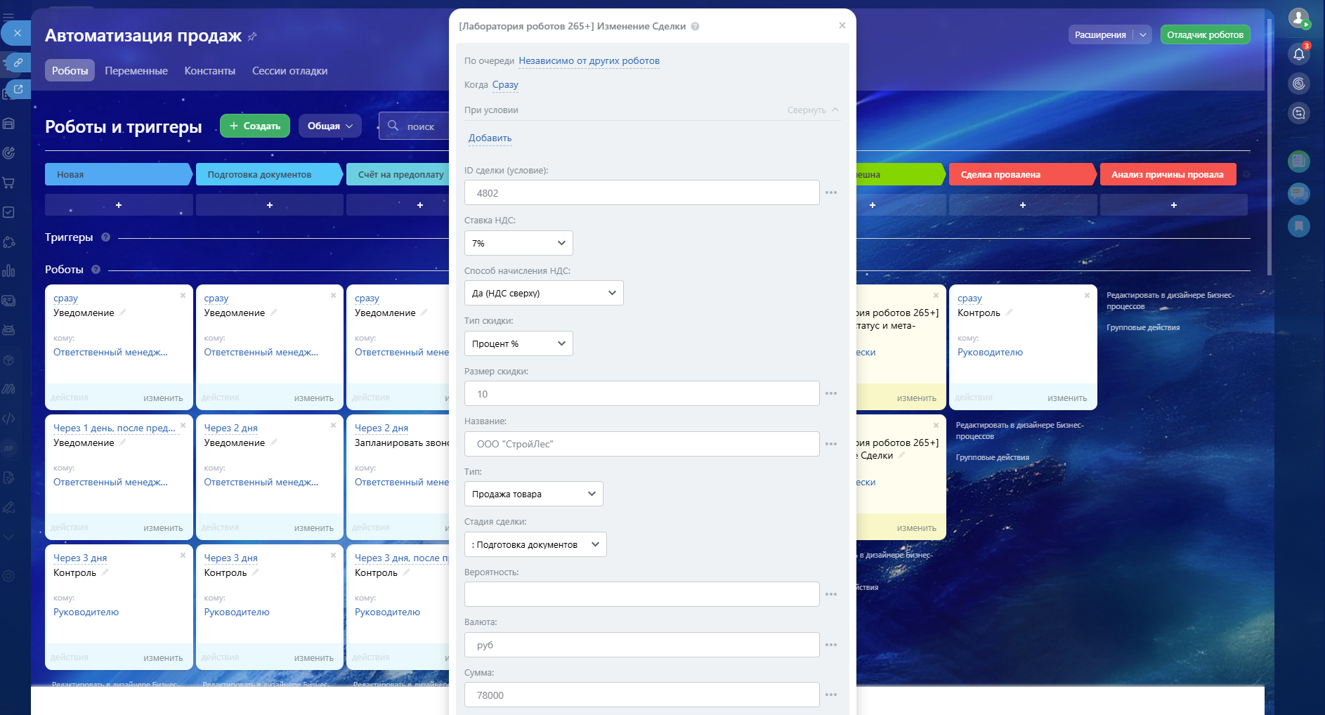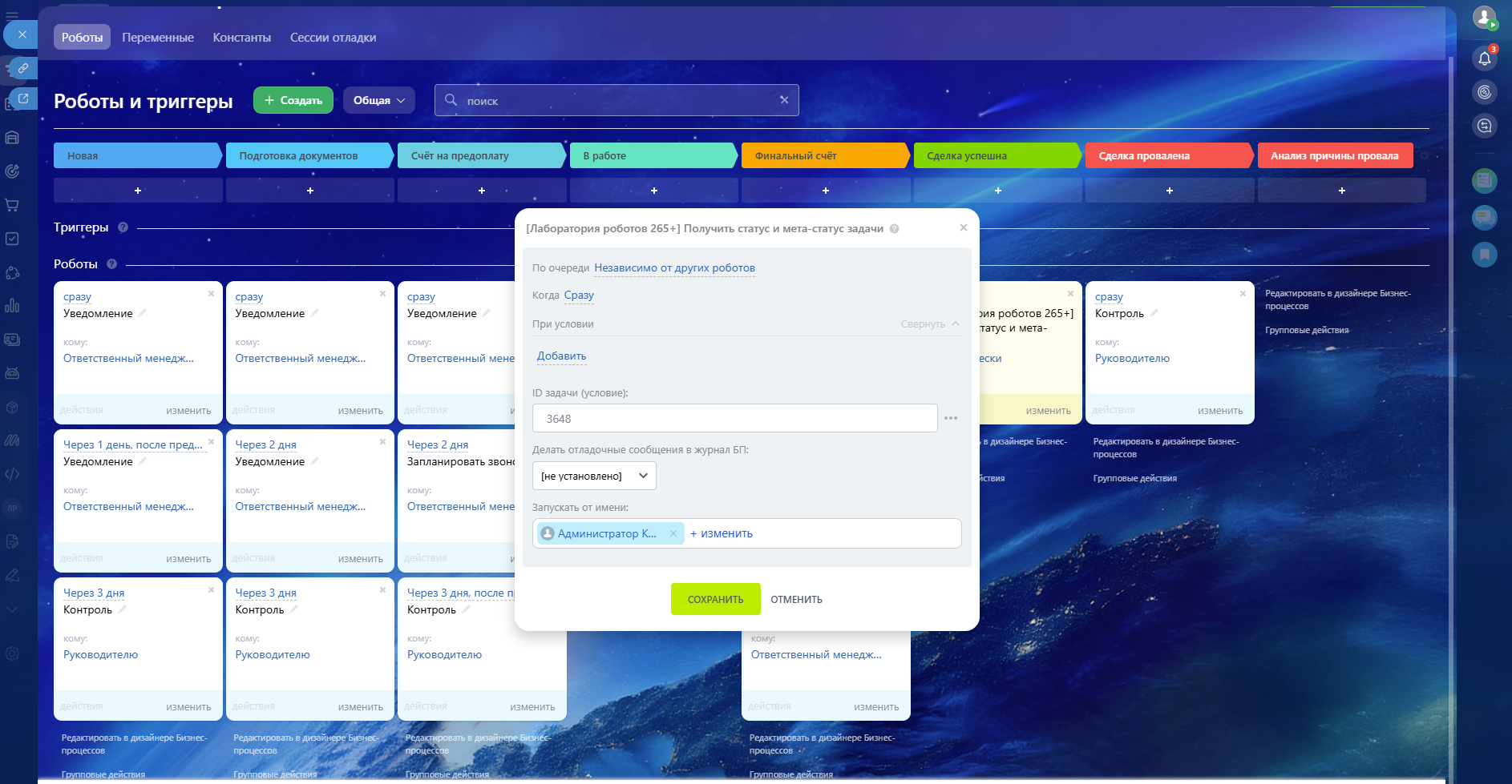 Лаборатория роботов — мощное приложение, которое кардинально расширяет возможности штатных роботов Битрикс24 и открывает безграничные горизонты для автоматизации вашего бизнеса!