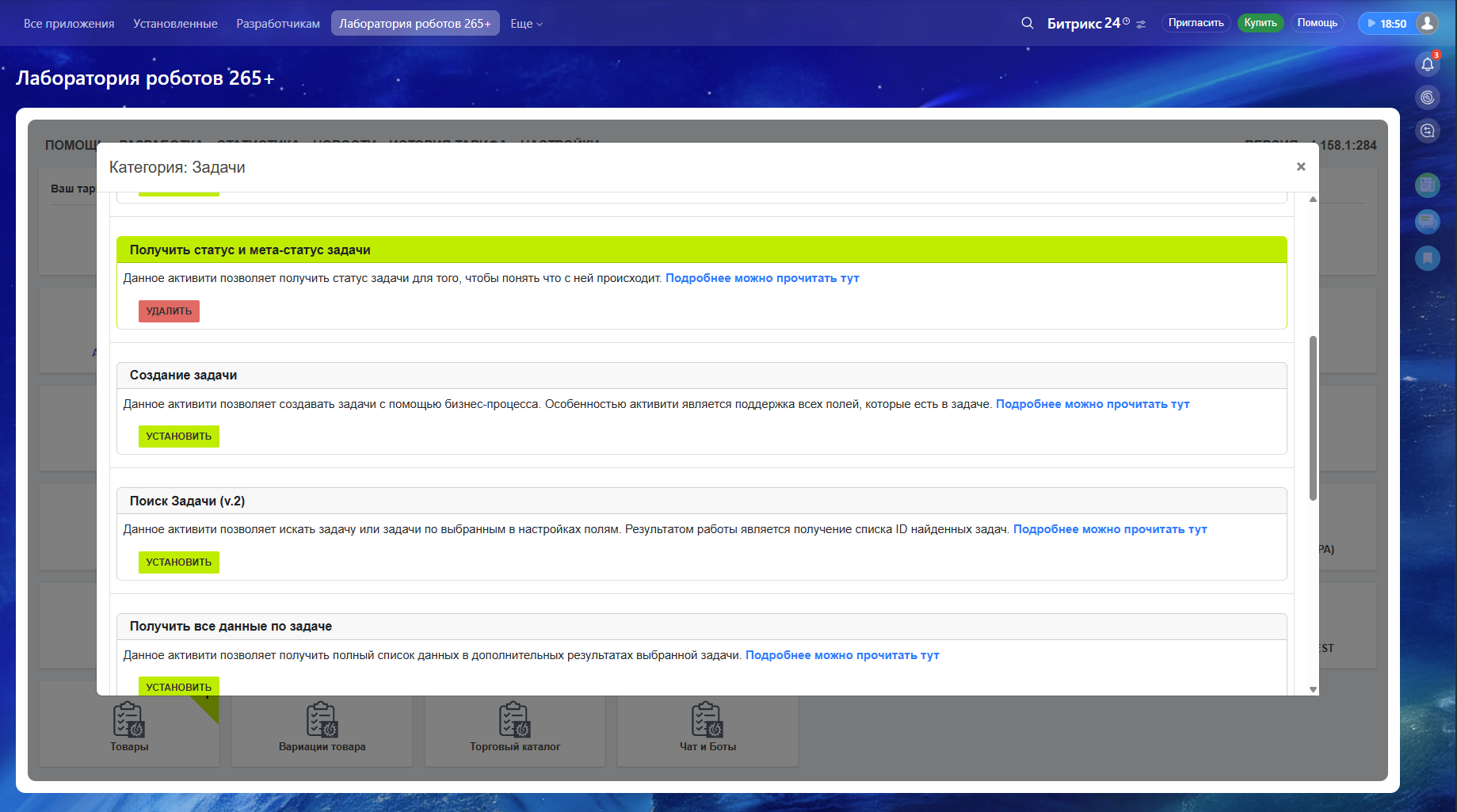• Получить статус и мета-статус задачи — настройка и конфигурация (465+ установок);
