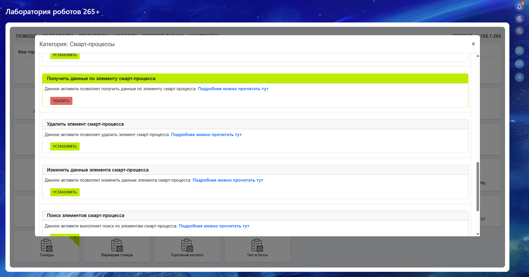 • Получить данные по элементу смарт-процесса — автоматизация процессов (289+ установок);