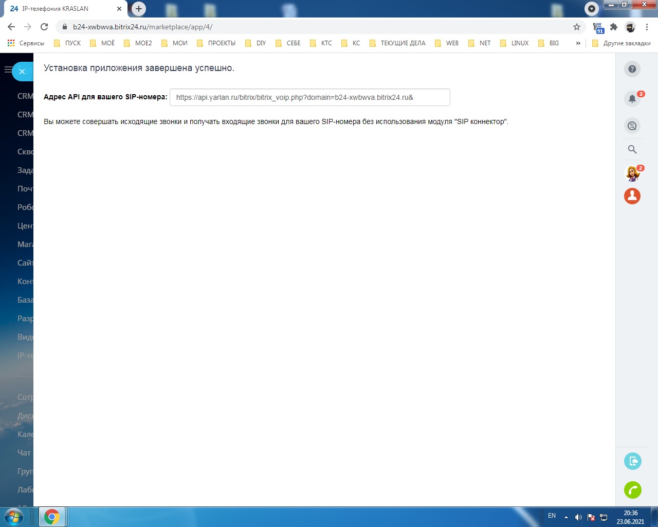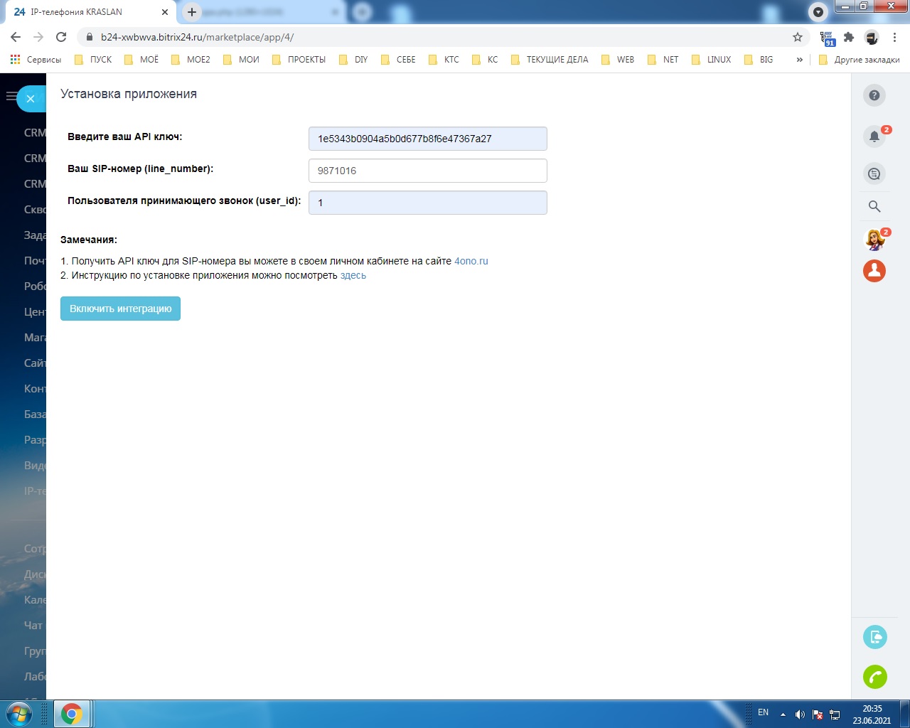 Приложение осуществляет интеграцию CRM Битрикс24 с IP-телефонией компании "Краслан".