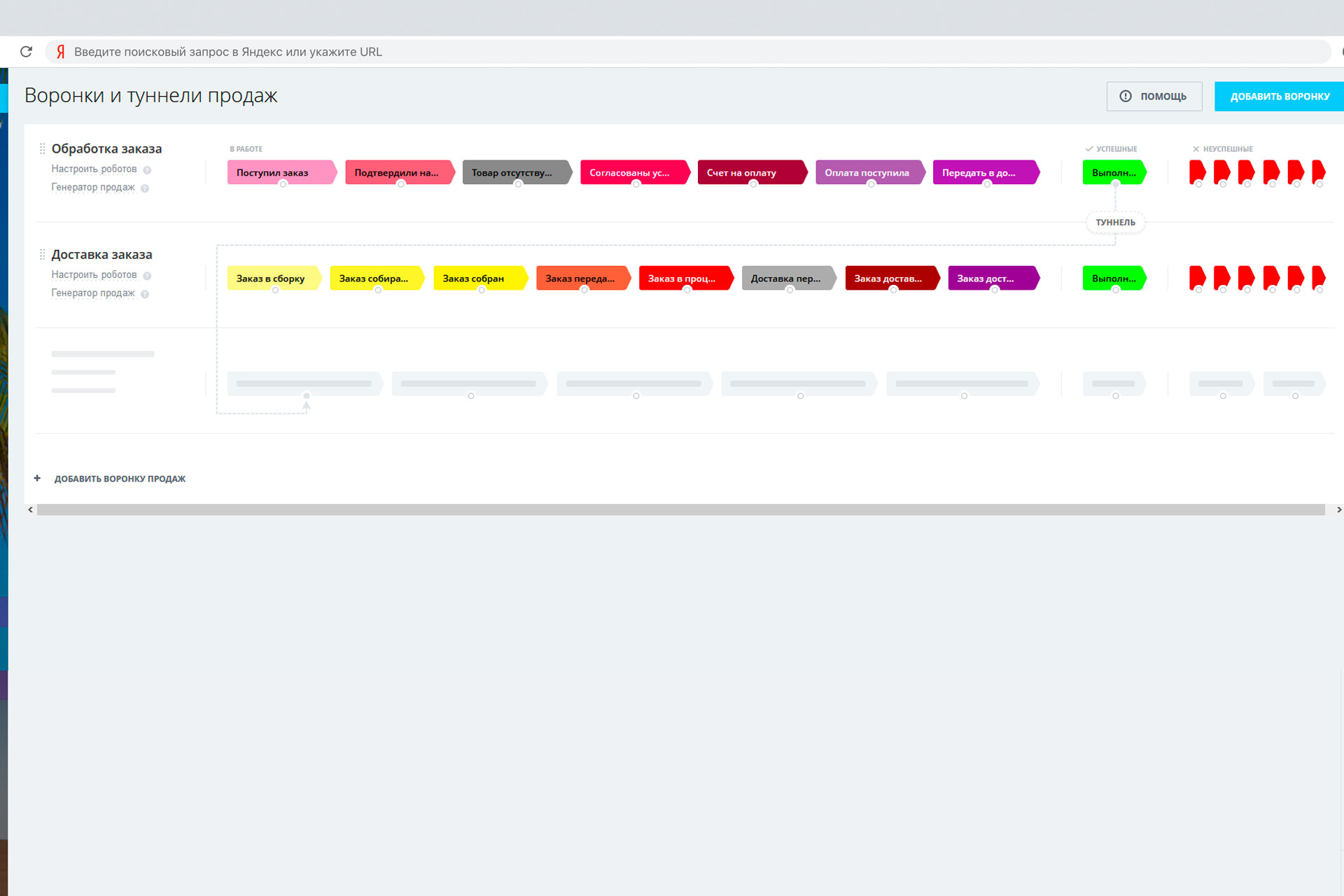 Использование разных воронок, позволят оценить эффективность работы каждого направления вашей компании по отдельности.