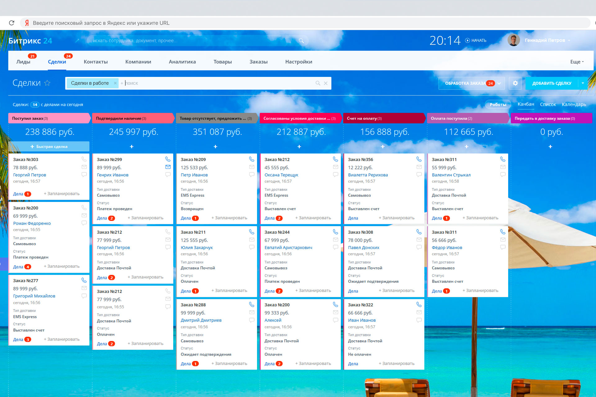 - стадии счётов и предложений, чтобы отслеживать статус переговоров и следить за дебиторской задолженностью;