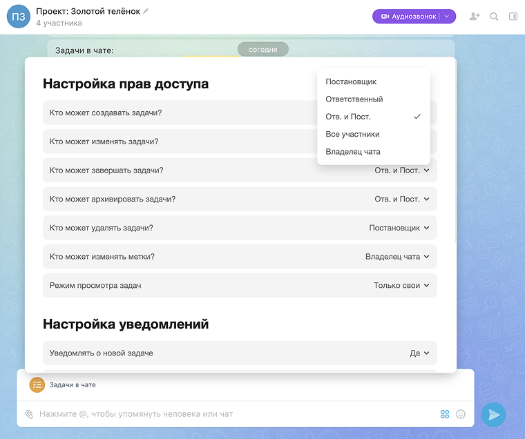 Создавайте и управляйте задачами прямо в чате – быстро, удобно, эффективно.