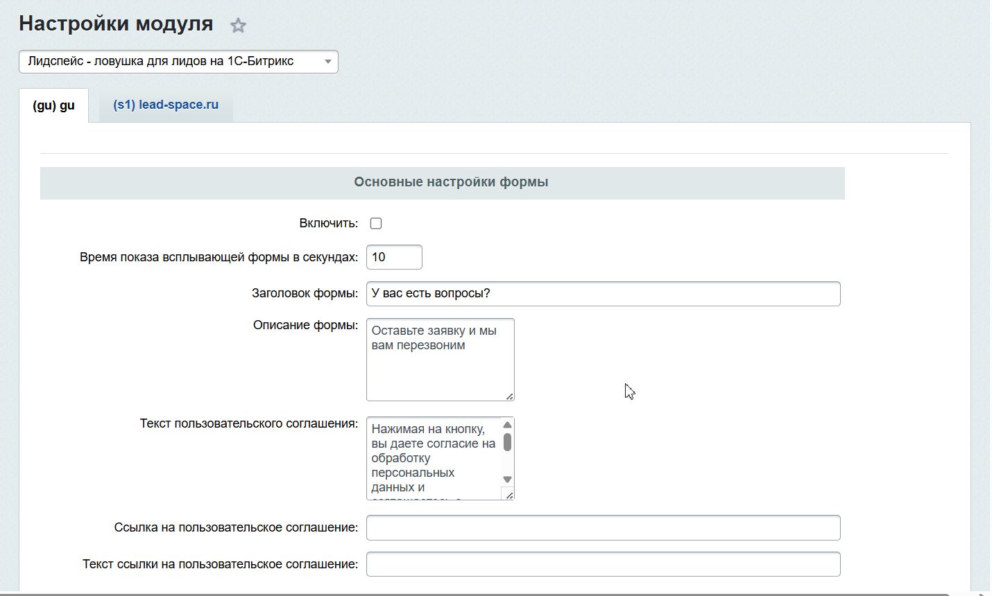 | На сайте должен быть установлен модуль из маркетплейса 1С-Битрикс «Ловец лидов» https://marketplace.1c-bitrix.ru/solutions/leadspace.leadcatcher/ |