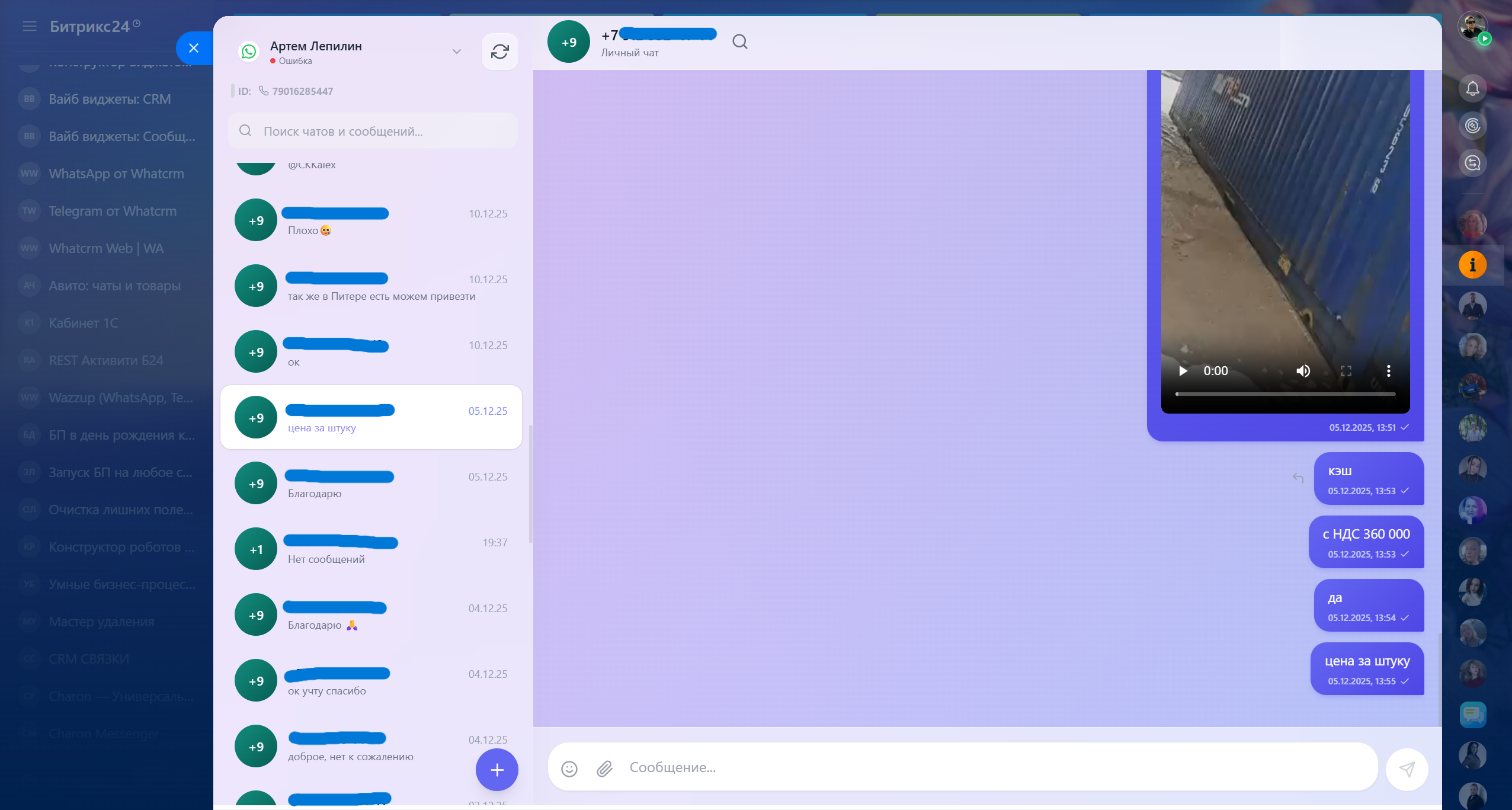 - Встроенный веб-мессенджер для оператора прямо в интерфейсе Битрикс24