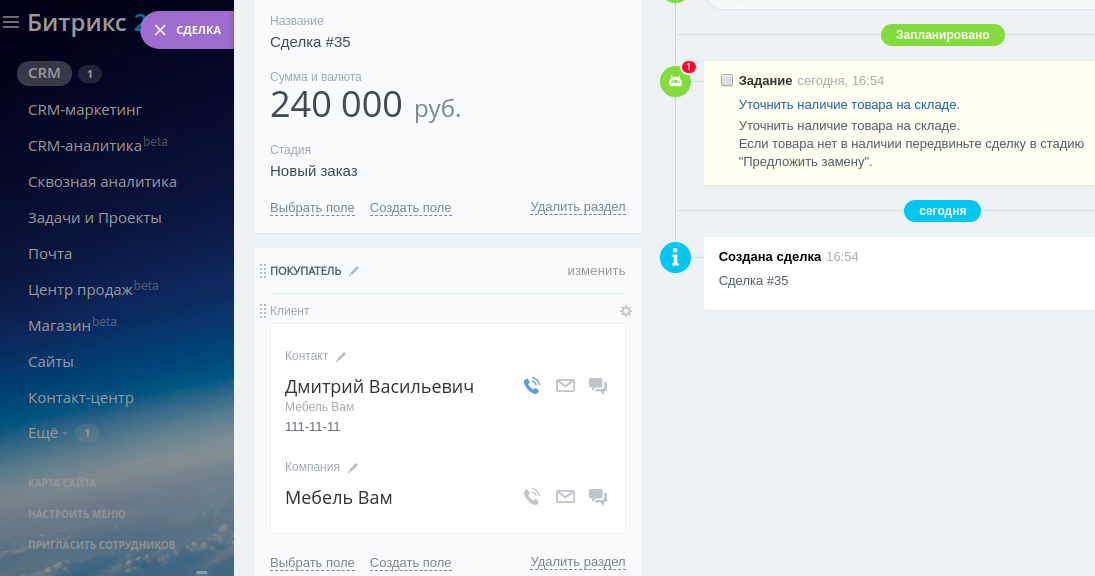 Готовое решение для Розницы! Один клик и Вы можете установить оптимальное решение для интернет розницы! Данное решение содержит специализированные разделы полей для сбора полной информации по сделке.