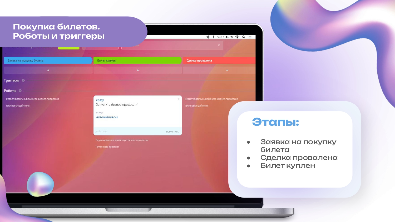 - Для ответственного лица в отдельной воронке появляется сделка на покупку авиа- и ж/д билетов, с уже заполненной ранее информацией.