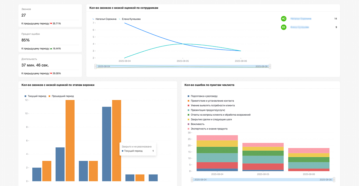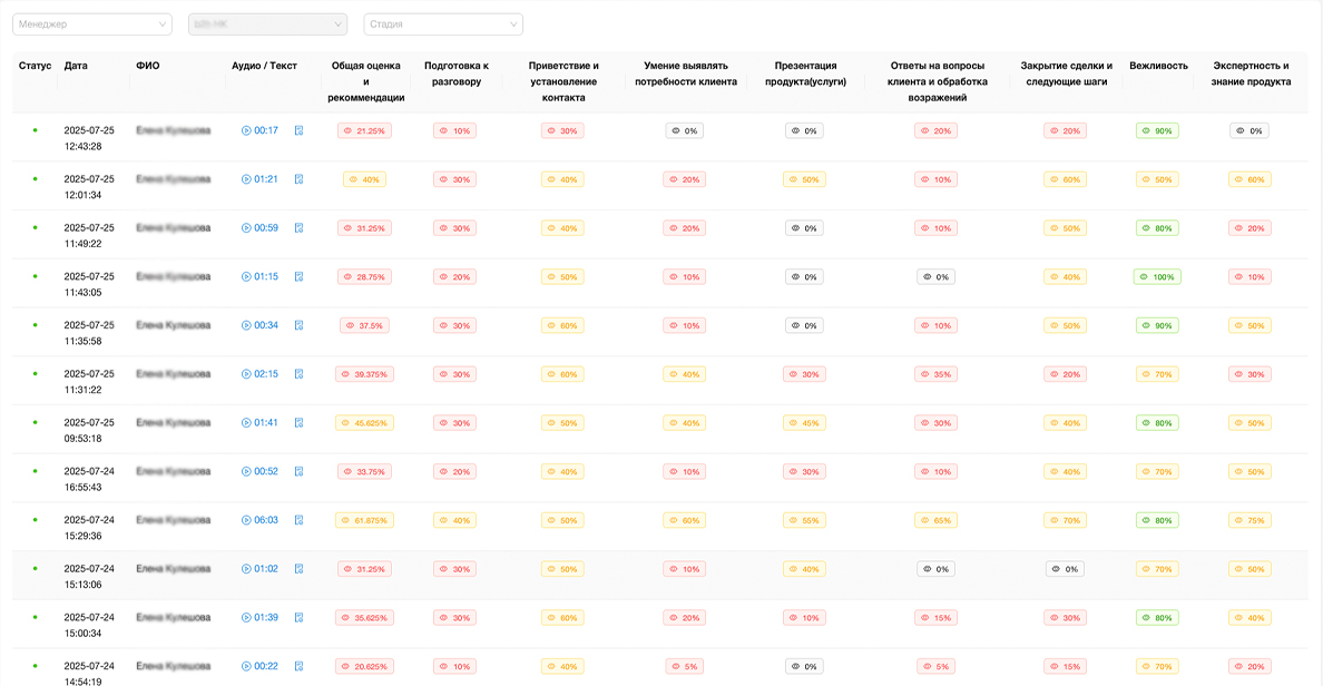 - Автоматические отчёты, конкретные примеры и рекомендации “что говорить” и “как поступить”
