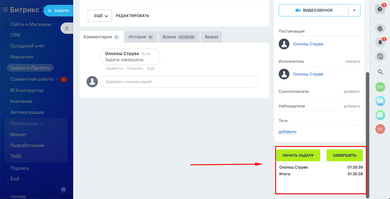 Приложение для фиксации времени выполнения задач. Будет полезно для пользователей начальных тарифов Битрикс24.