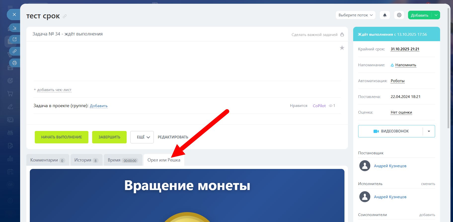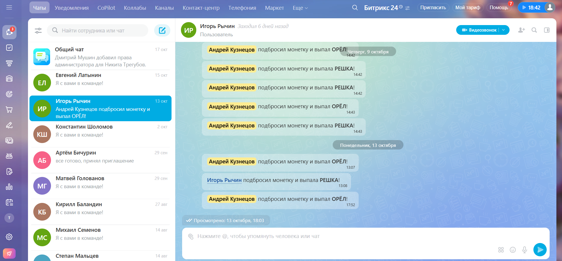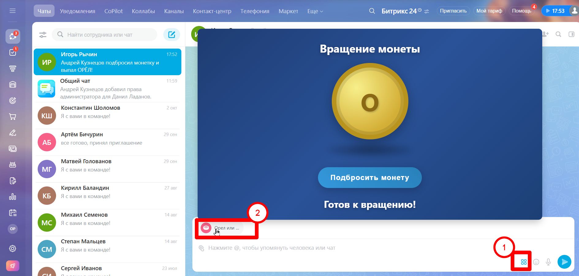 Приложение «Орел или решка» - это лёгкий инструмент геймификации прямо внутри Битрикс24.