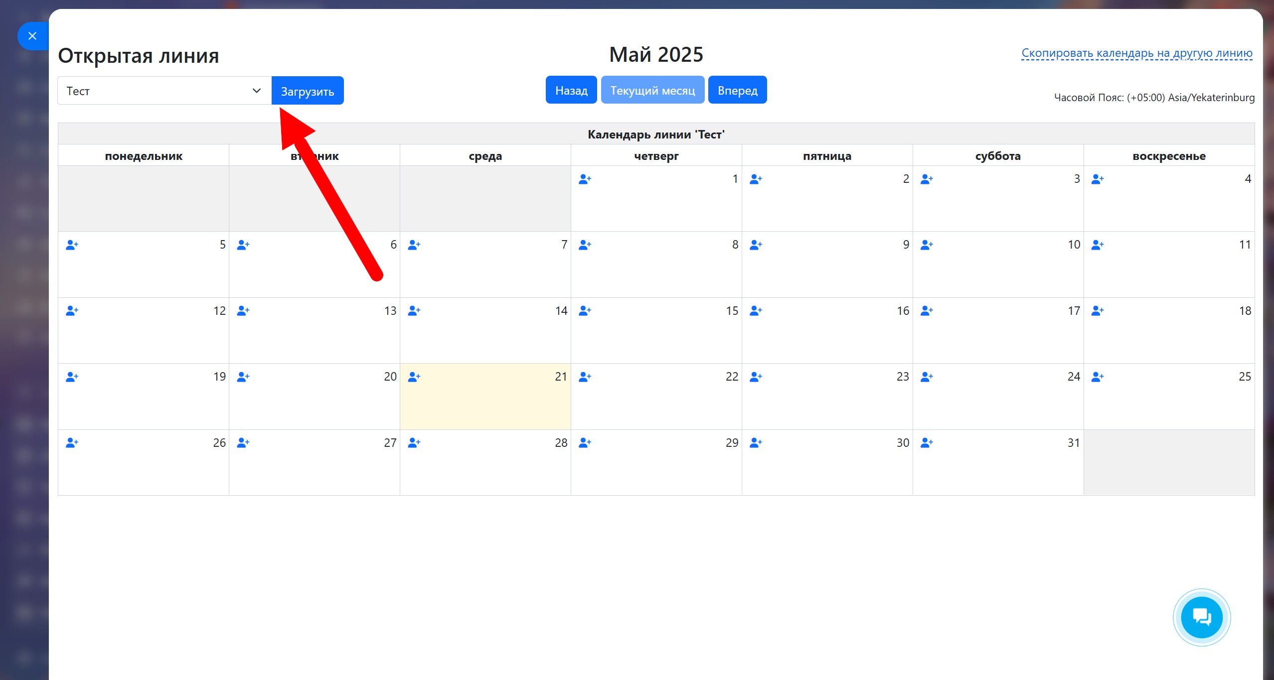 - Удобный календарь: интерфейс позволяет легко выбрать сотрудников или отделы и время их дежурств для каждой открытой линии.
