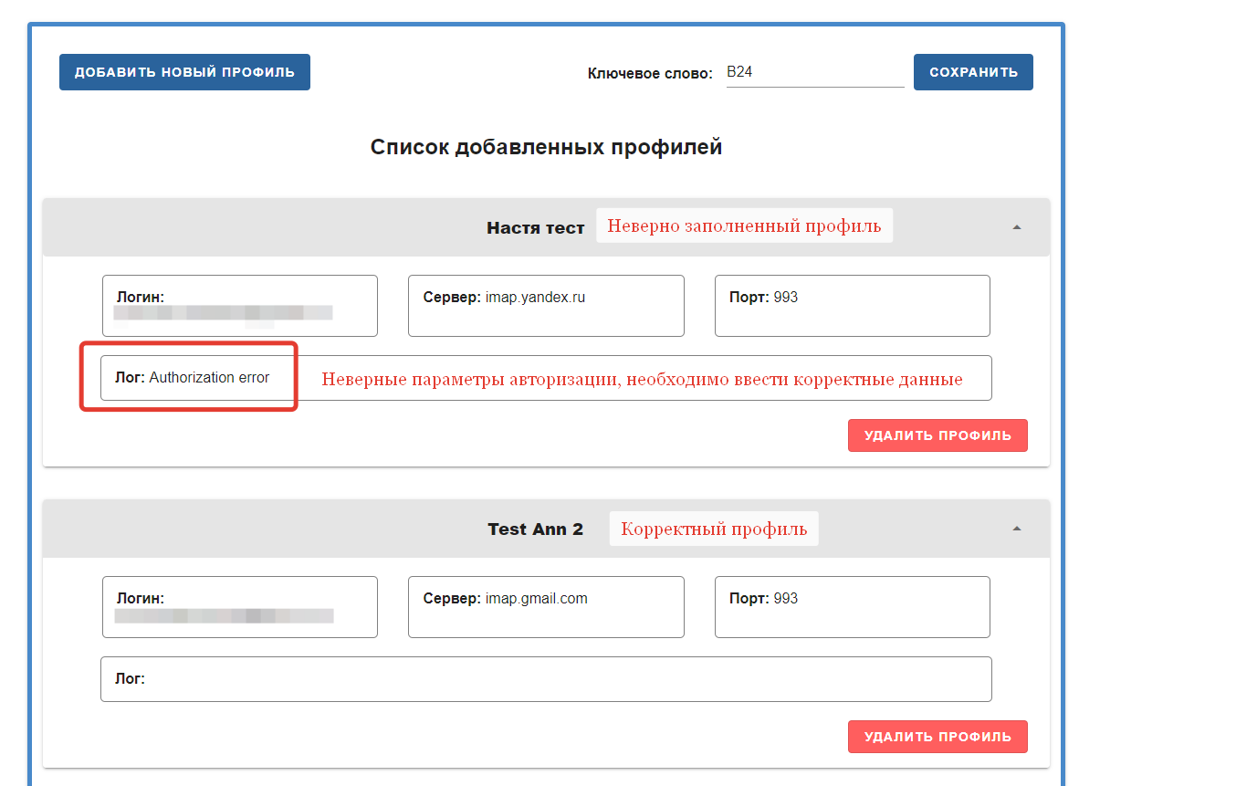 Для организации взаимодействия по протоколу IMAP нужно произвести настройки вашего почтового приложения (почтового ящика, который указывается как login).Инструкции можно посмотреть по данным ссылкам: