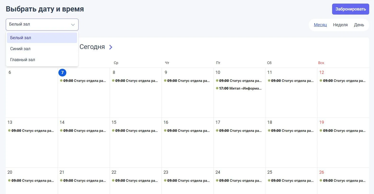 Автоматизируйте бронирование конференц-залов для встреч.