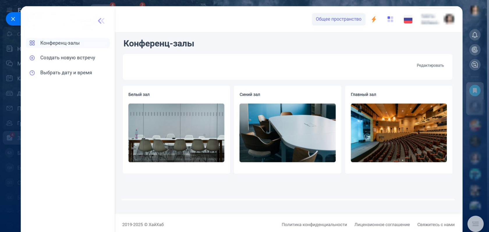 Сервис Бронь залов — часть экосистемы ХайХаба, платформы с AI для управления человеческим капиталом, знаниями и корпоративной информацией. Сервис направлен на удобство пользования общими пространствами в офисе без накладок по времени.