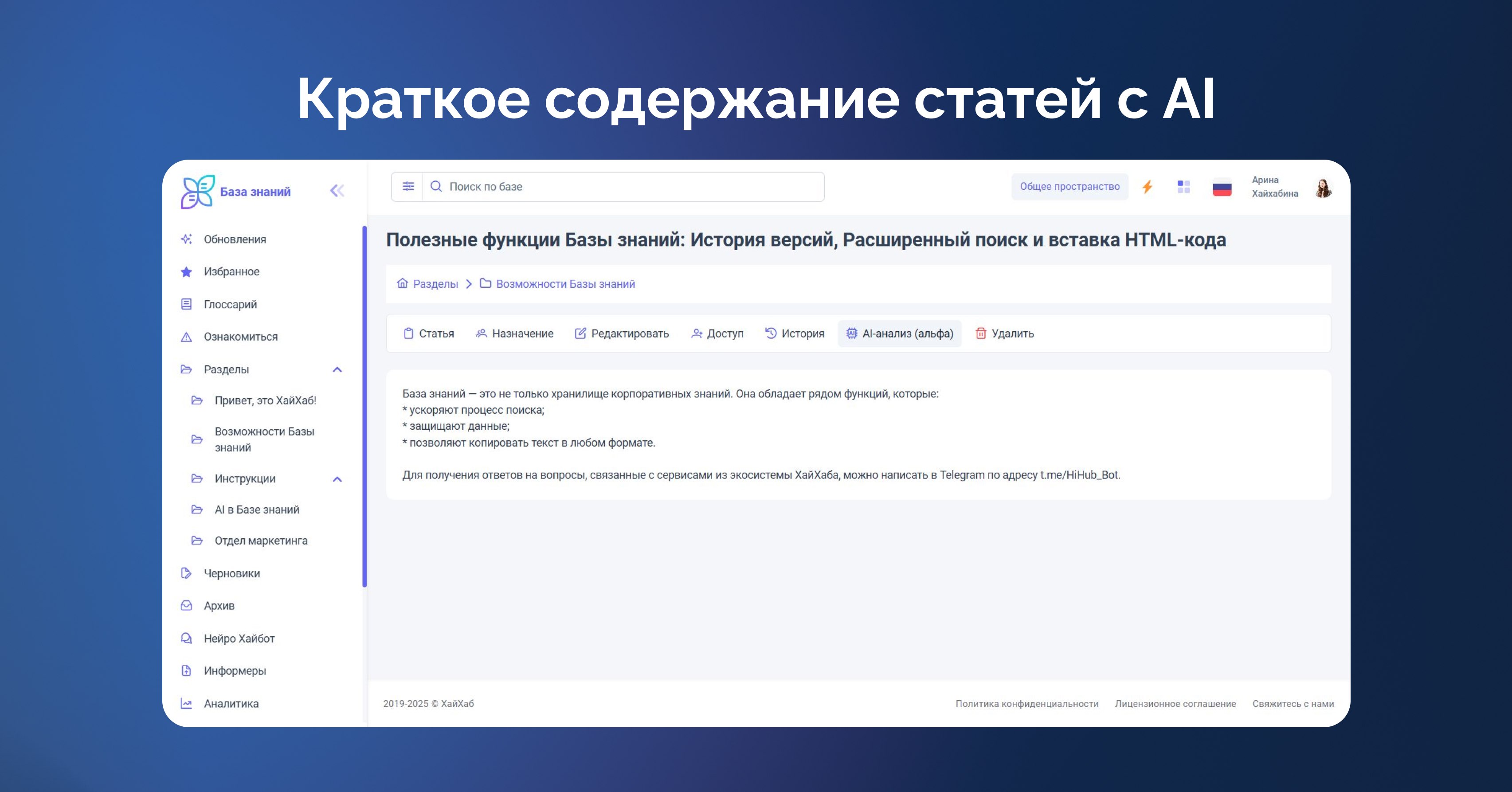 Обновления ХайХаба — AI в Базе знаний: https://start.hihub.ru/hihub_updates