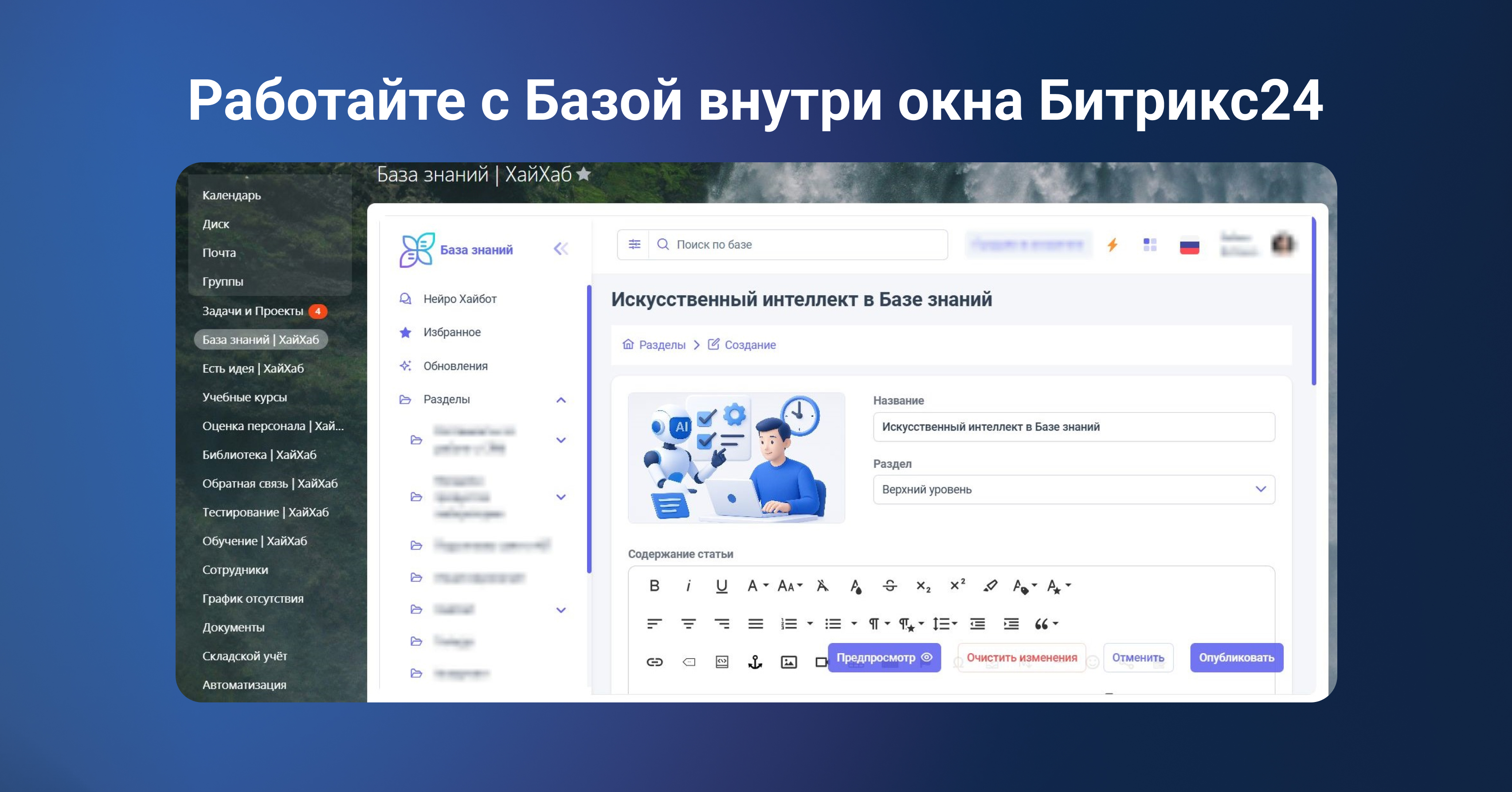 Используйте Базу знаний ХайХаба в мобильной версии Битрикс24.