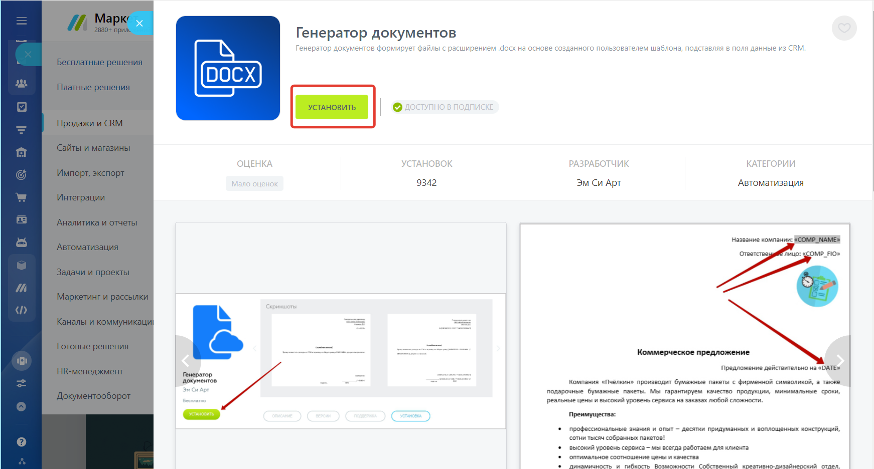 Генератор документов автоматизирует заполнение шаблонных документов, заменяя необходимые поля нужными данными: CRM, заданными параметрами, данными из введенных полей.