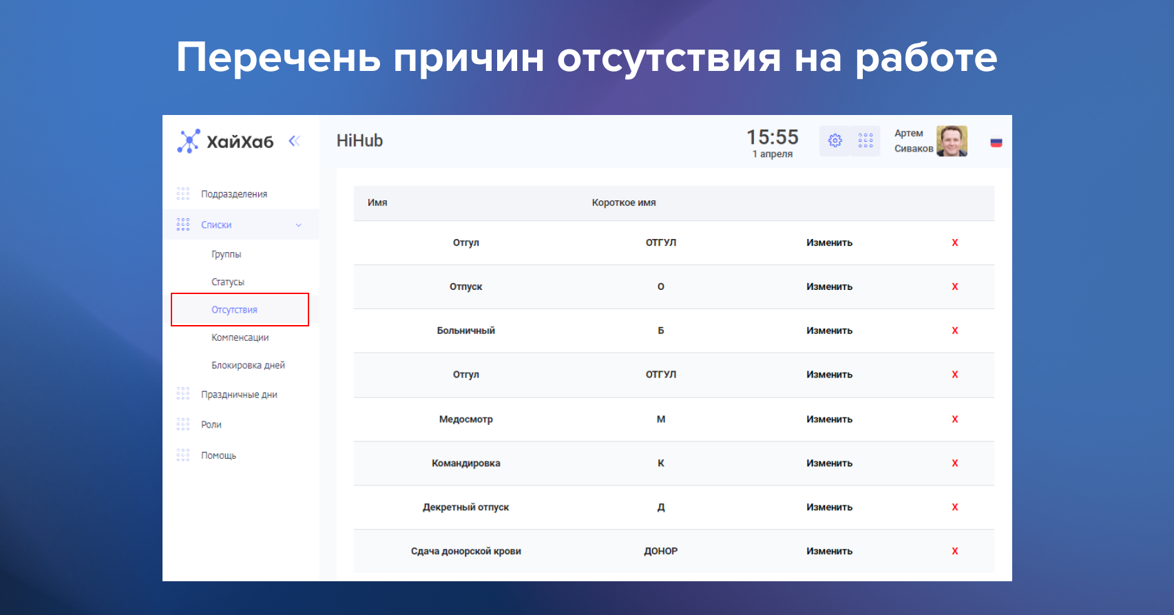 Упростите процессы согласования графика и внесения отсутствий — с помощью Табеля вы можете скорректировать расписание в пару кликов.