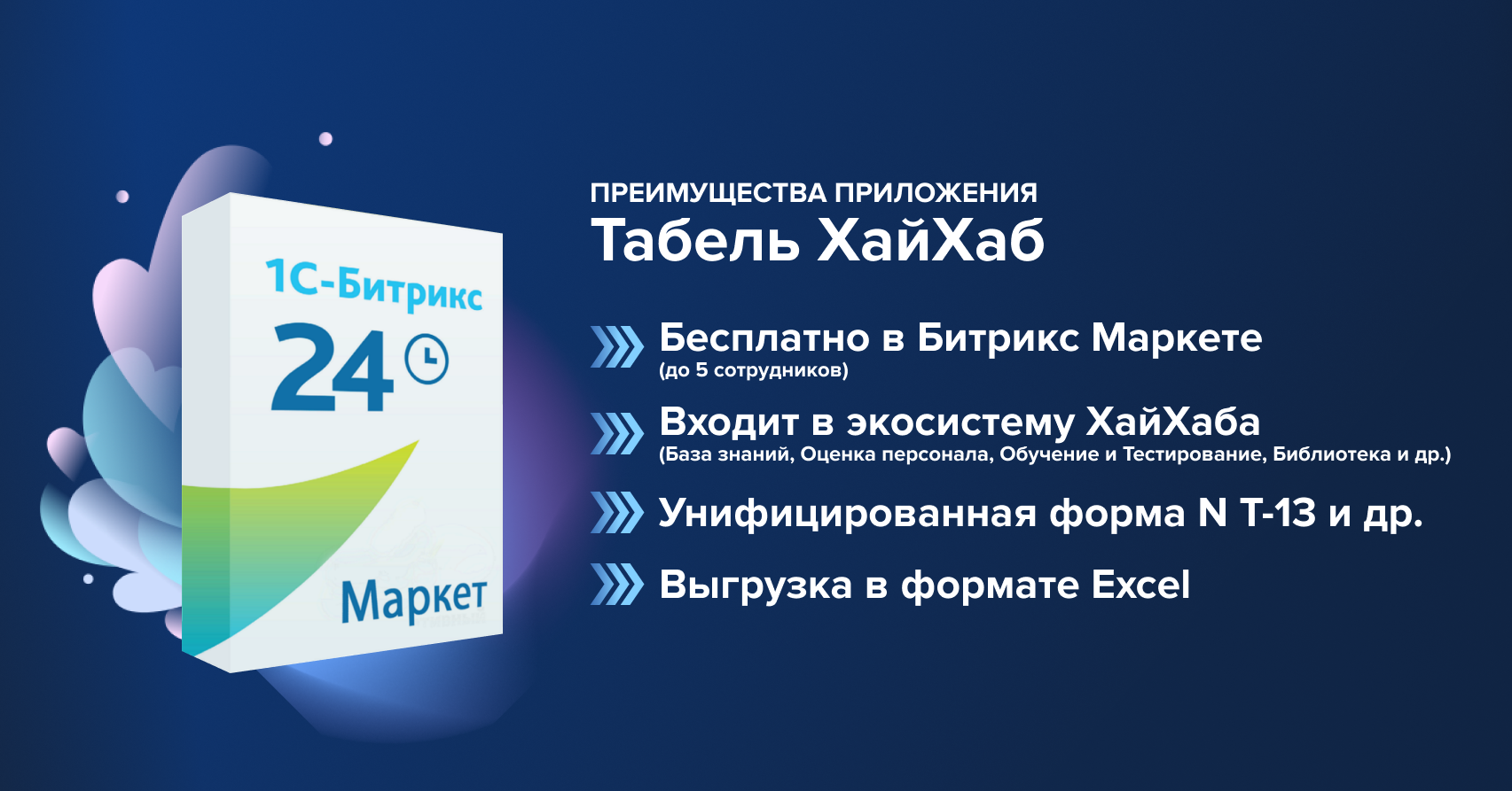 Приложение входит в экосистему ХайХаба и доступно бесплатно по подписке Битрикс24 Маркет. Бесплатная версия с лимитом в 5 пользователей.