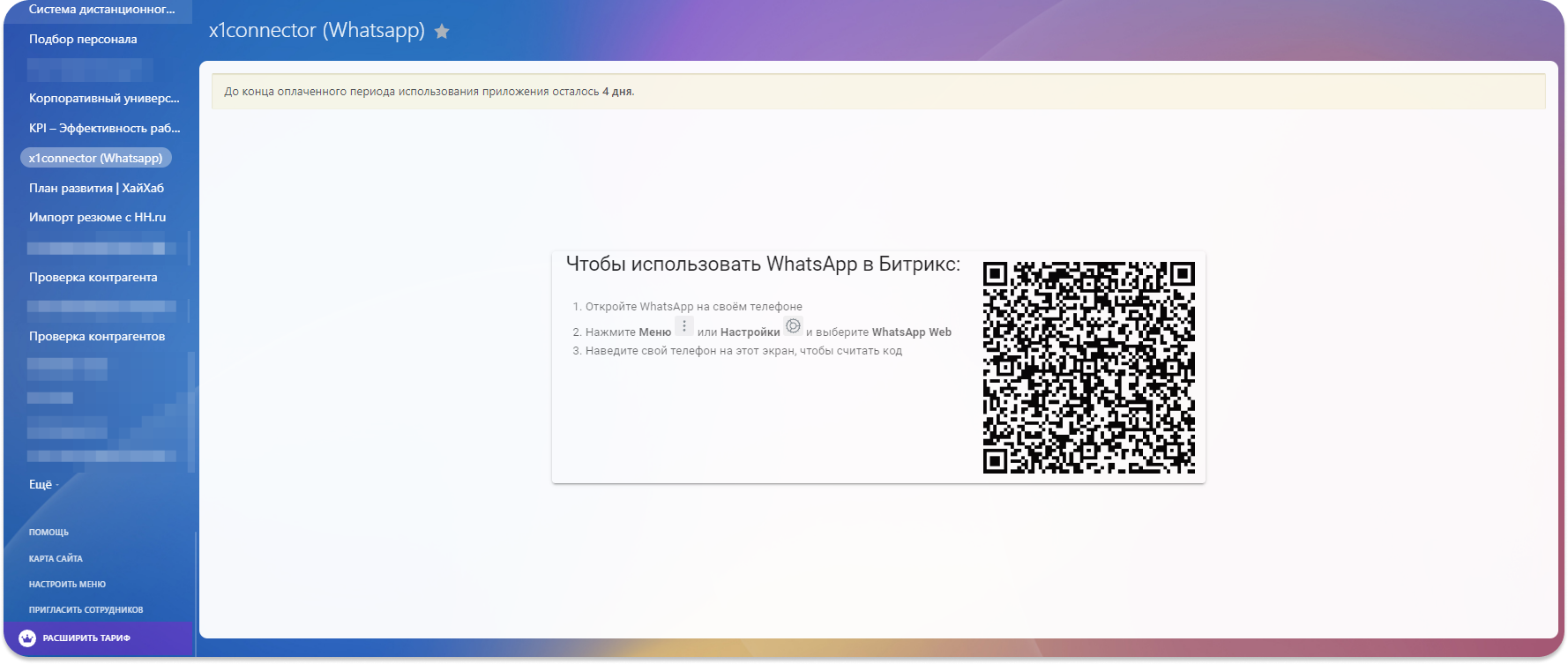 Отсканируйте QR-код из приложения x1connector в Битрикс24 на своем телефоне и дождитесь загрузки диалогов.