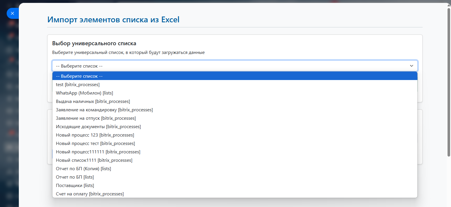 - Интуитивное сопоставление полей: Удобный интерфейс позволяет быстро сопоставить столбцы вашего файла с полями универсального списка Битрикс24.
