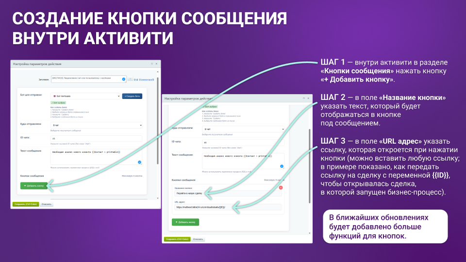 Отправка сообщения с кнопкой на задачу или элемент внутри Битрикс24.
