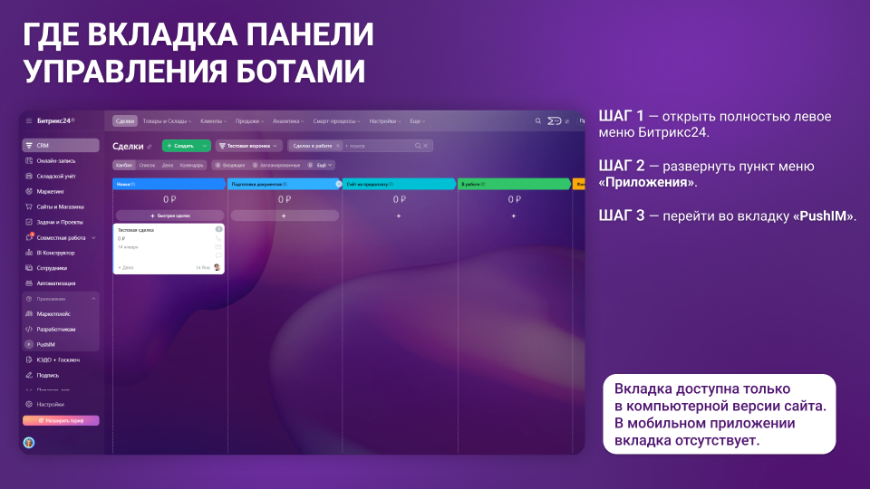 Теперь уведомления могут отправляться автоматически — сразу при наступлении нужного этапа сделки, задачи или бизнес-процесса.