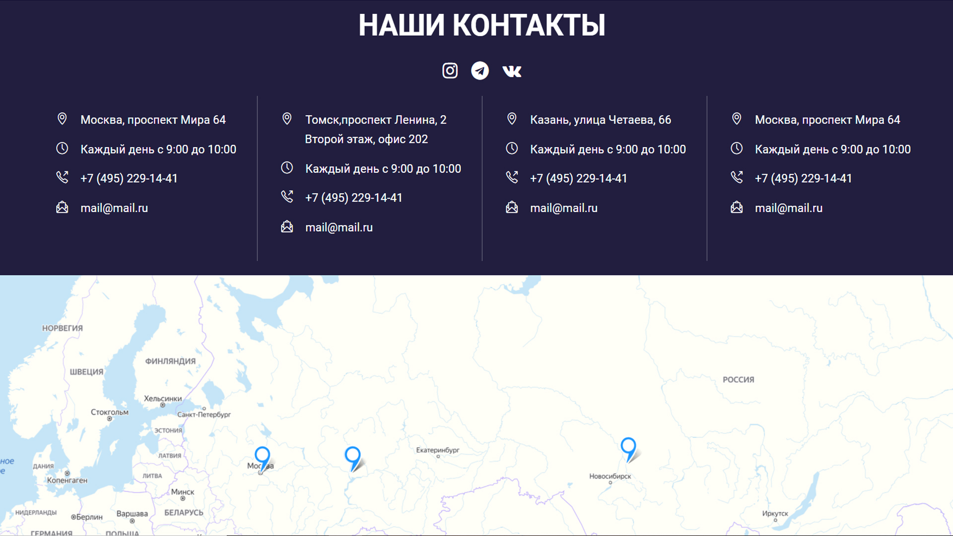 Блоки продуманы под реалии бизнеса и адаптированы для просмотра с любых устройств. Вы точно сможете выбрать подходящий вам блок, есть блоки для любого масштаба бизнеса, от 1 единственного офиса до сети филиалов по всей стране. Разместите блок, настройте дизайн, укажите метку и посетители сайта смогут с легкостью вас найти.