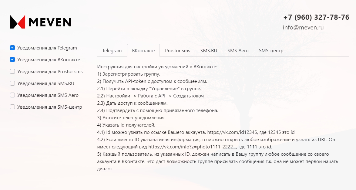 Если вам не хватает функционала, или Вы хотите разработать приложение именно под Ваш бизнес, обращайтесь по телефону +7 (960) 327 7876 или напишите нам на почту info@meven.ru