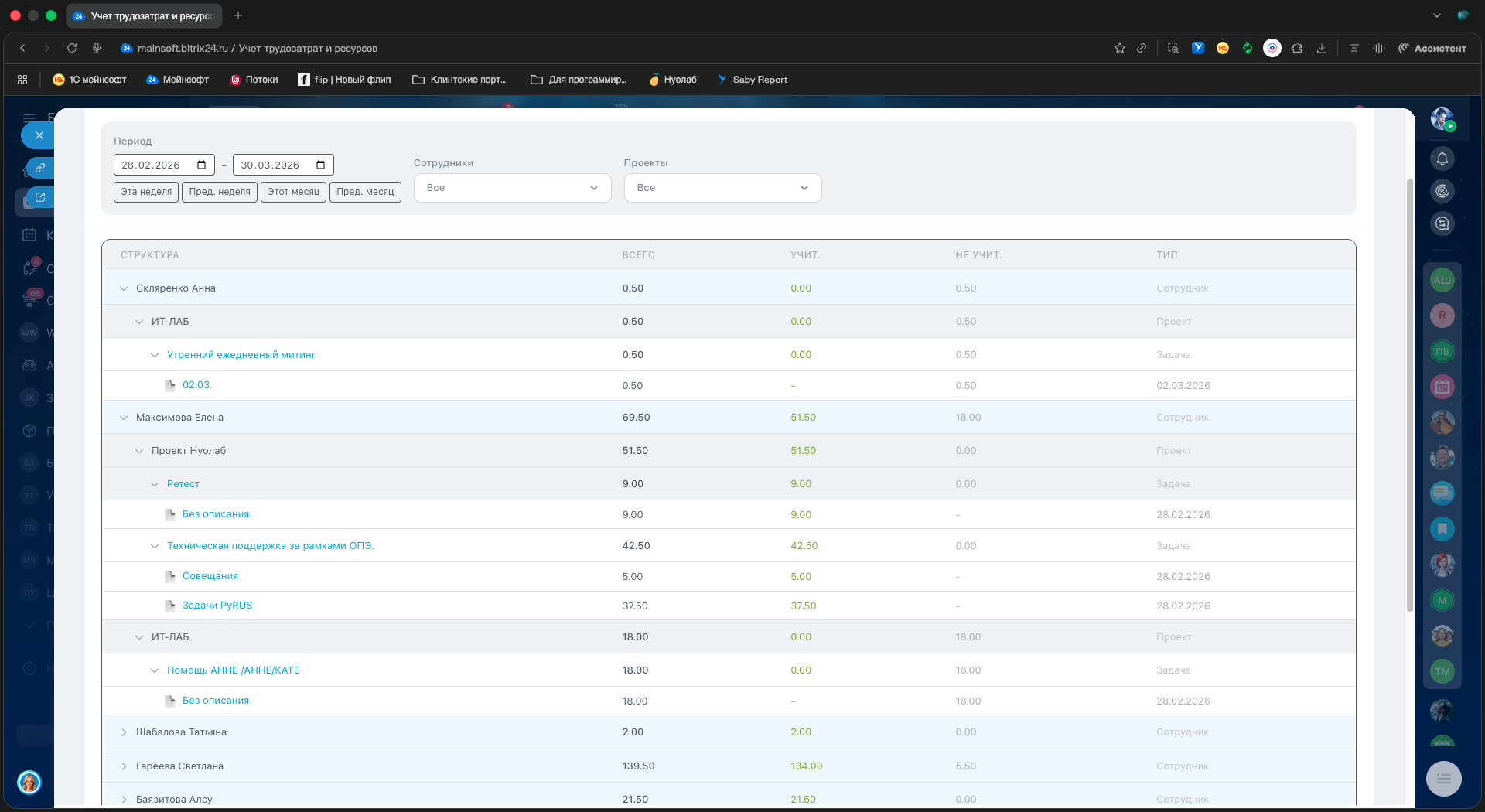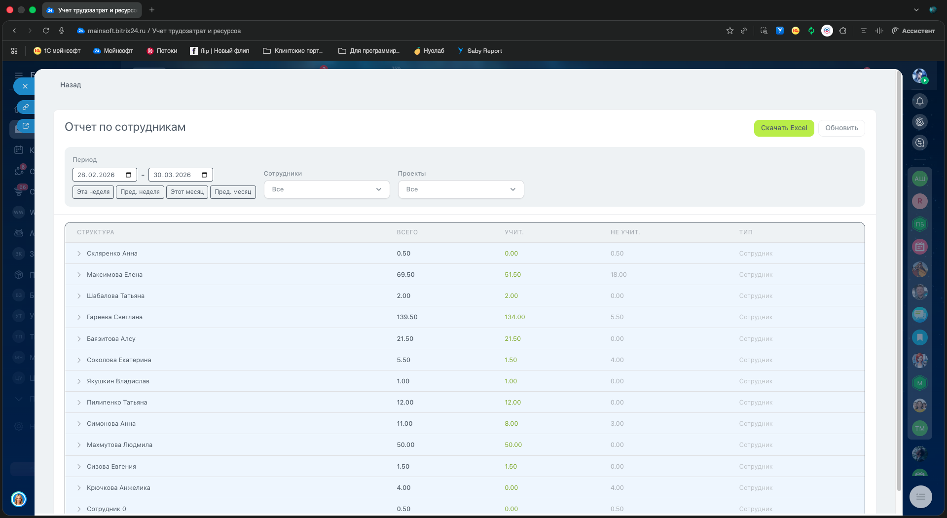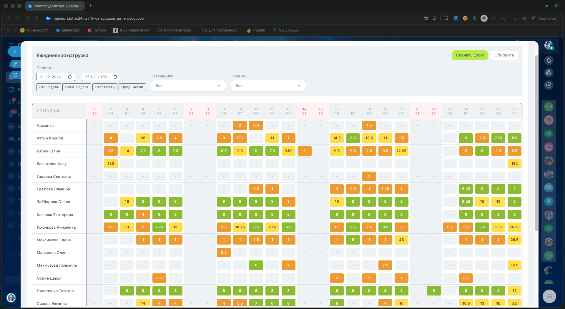 - HR и руководители — контроль загрузки сотрудников и анализ эффективности команды.