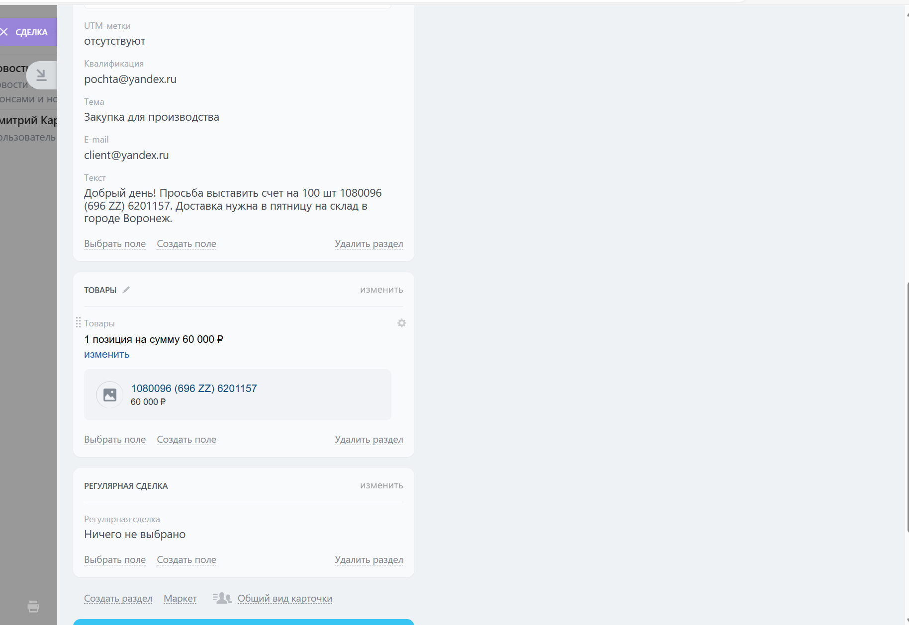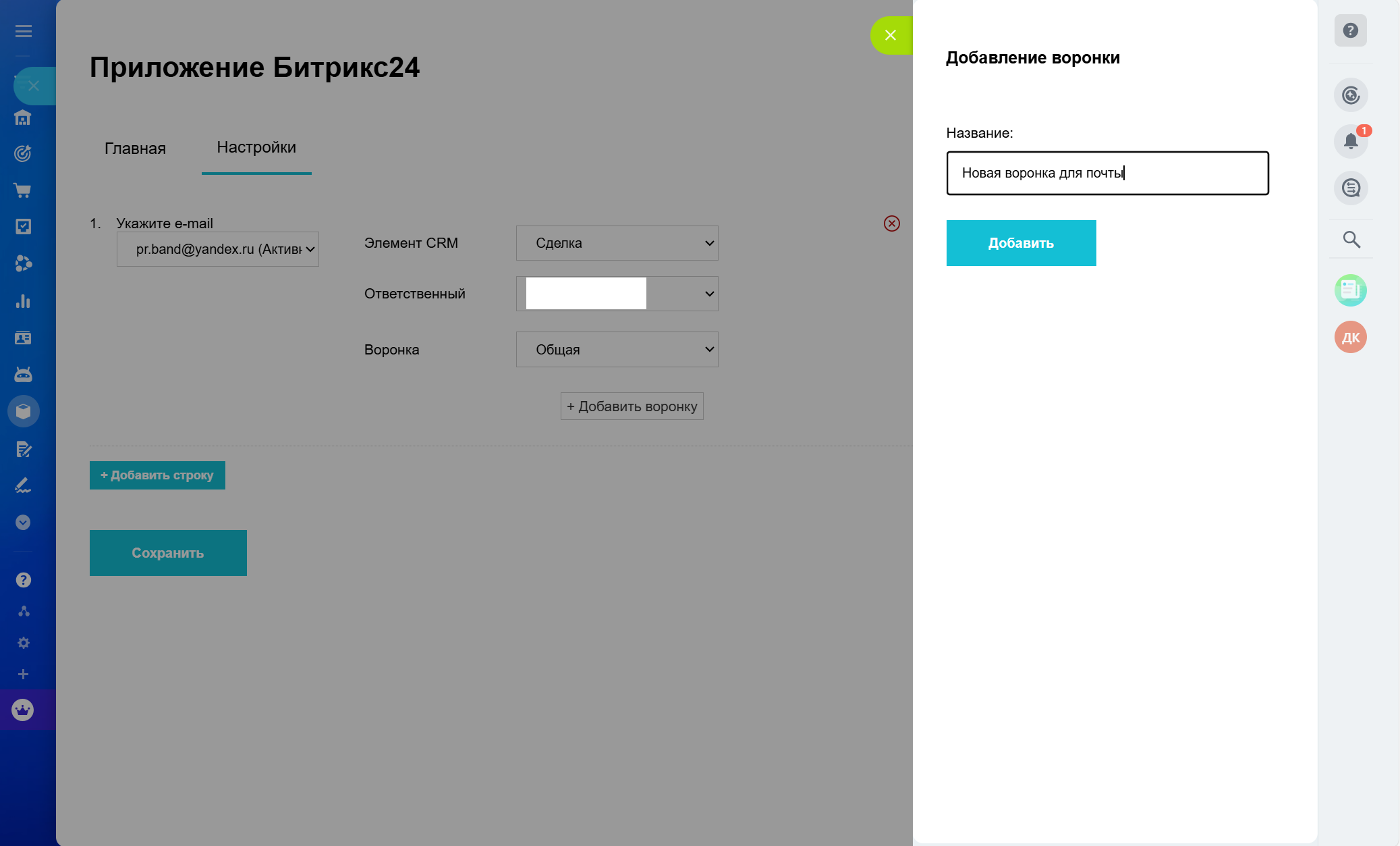 5. Прямо в приложении Вы можете создать новые воронки в Сделках/Смарт-процессах, где будут создаваться элементы с содержимым писем.