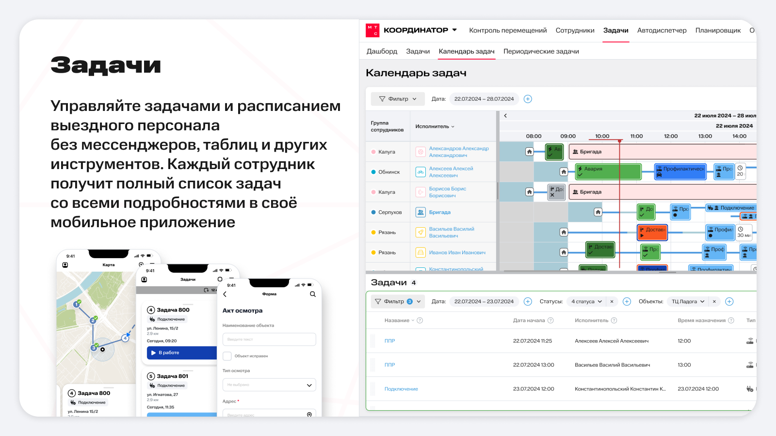 Мониторинг, контроль и управление выездным персоналом.
