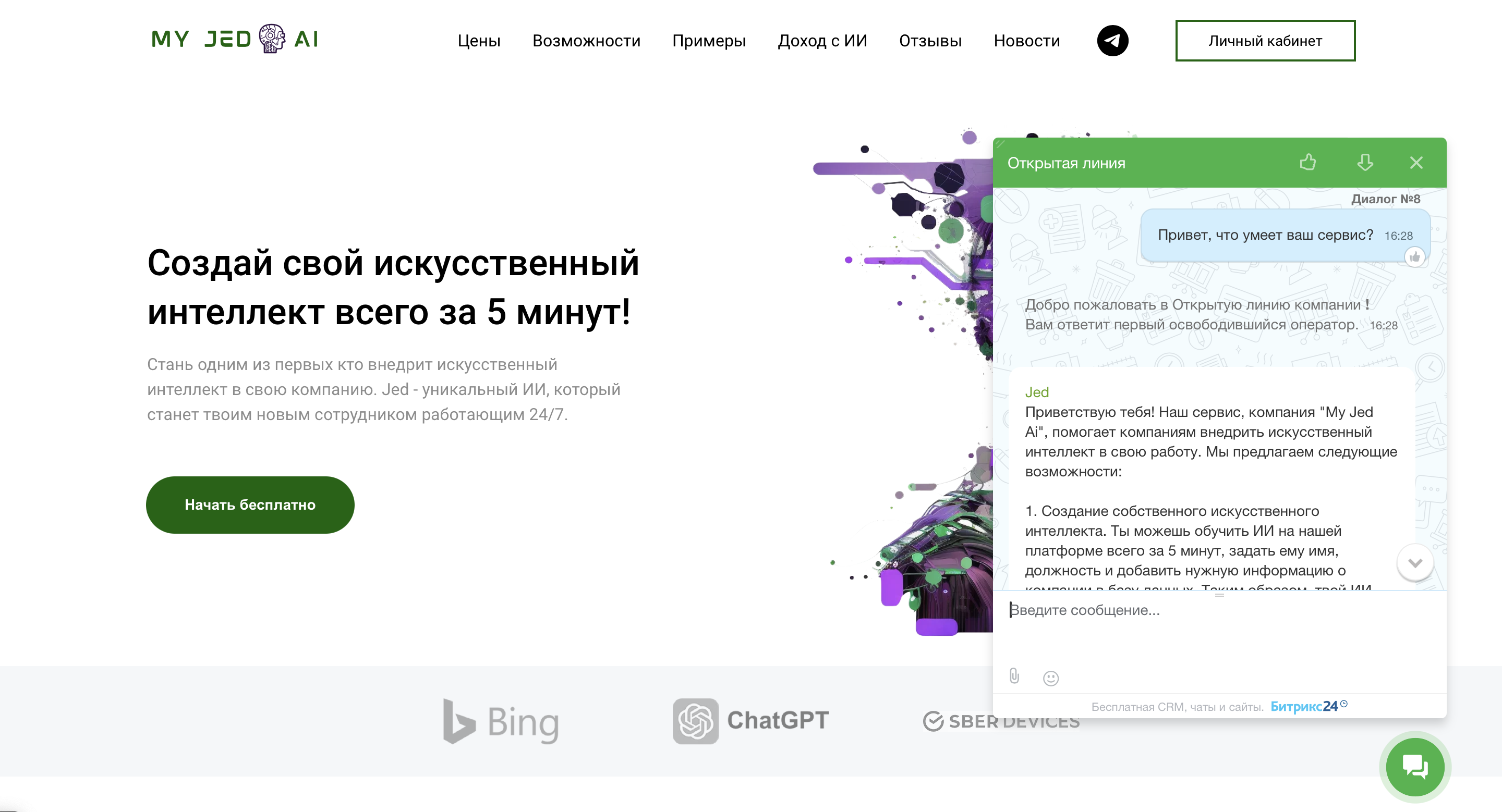 Создай свой искусственный интеллект и внедри его в свою компанию с помощью виджета My Jedai!