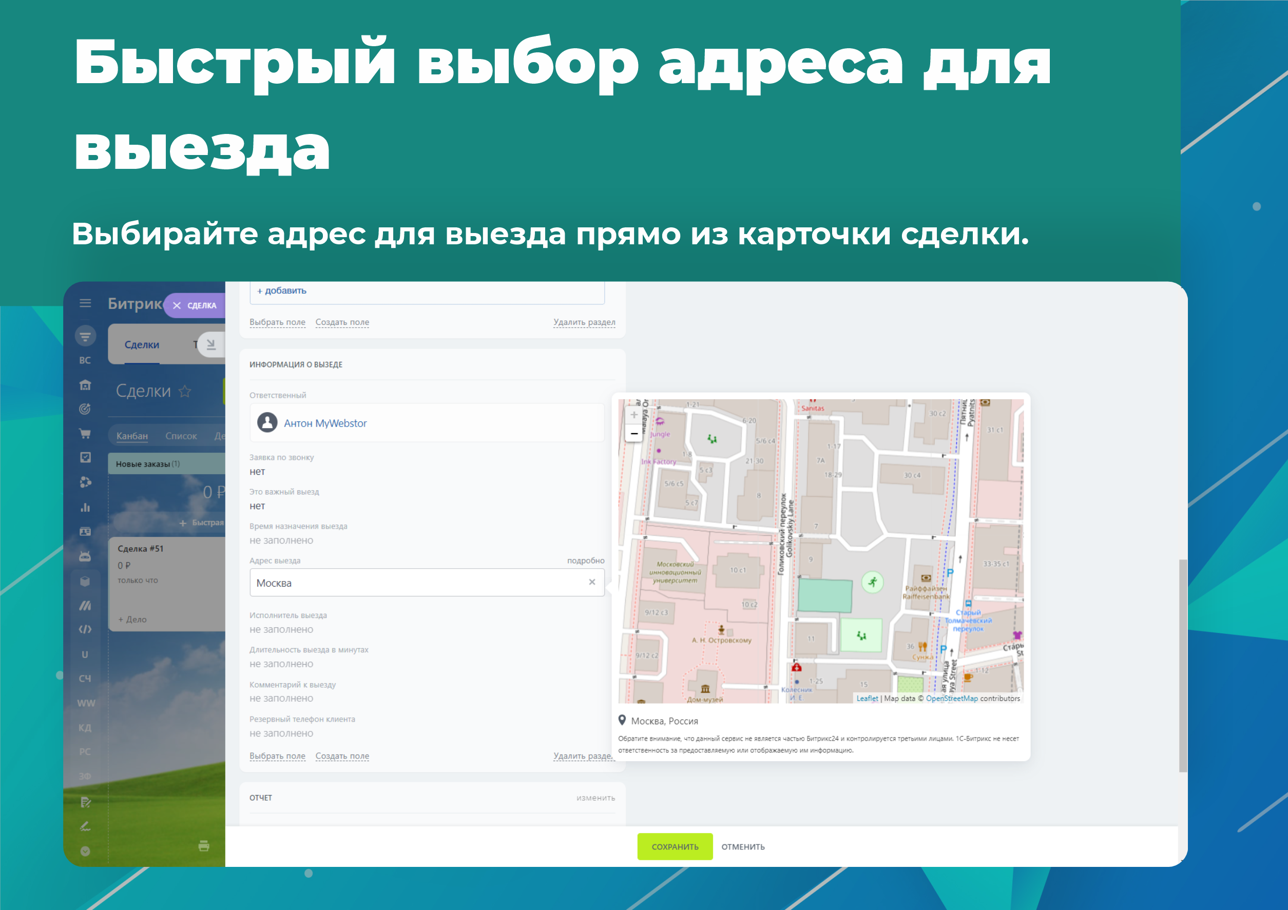 Эти поля позволяют сотрудникам эффективно готовиться к выезду, минимизируя возможность ошибок и повышая качество предоставляемых услуг.
