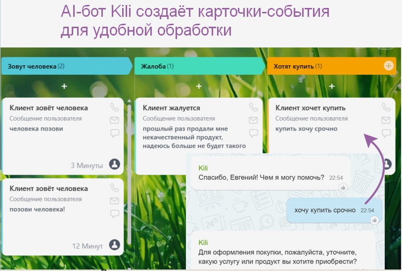 Забудьте о примитивных скриптах. Kili понимает контекст, ваши товары из каталога Битрикс24 и даже умеет рассчитывать стоимость.