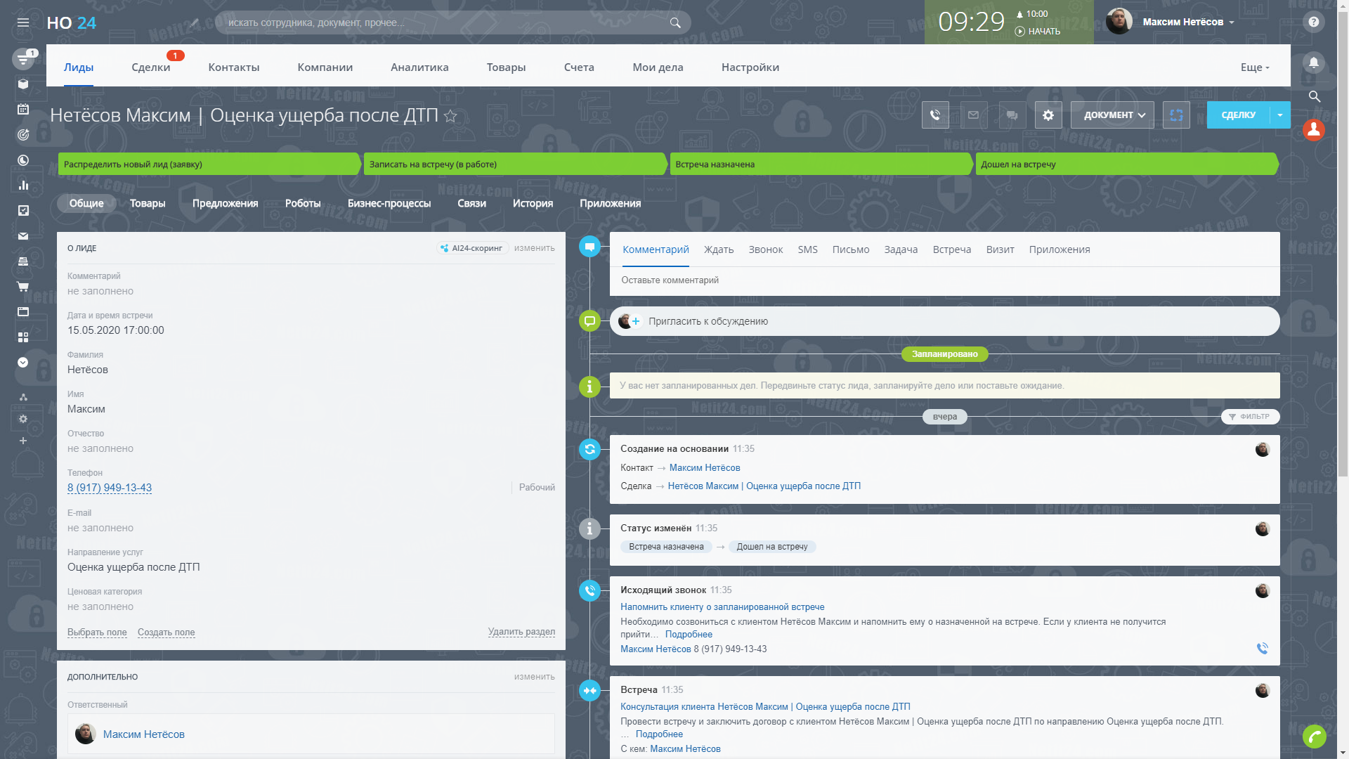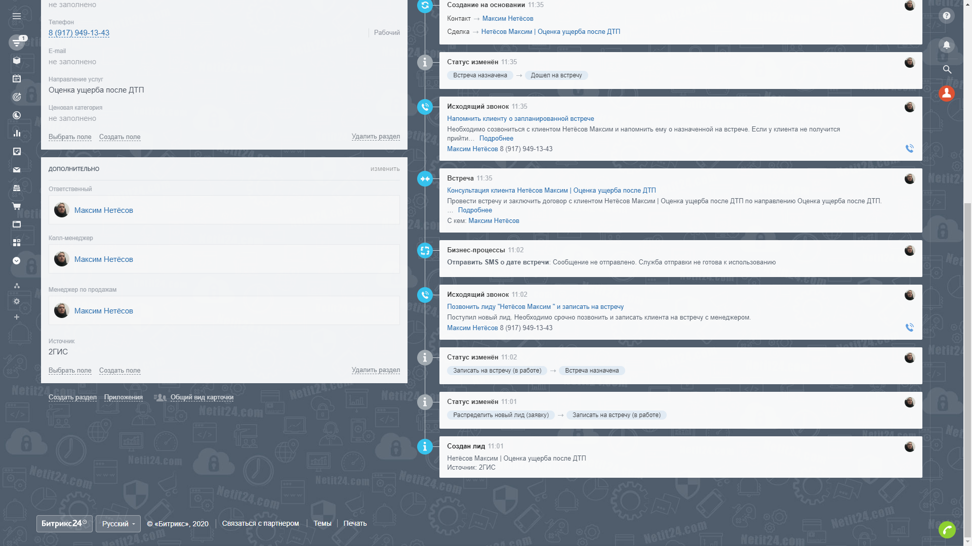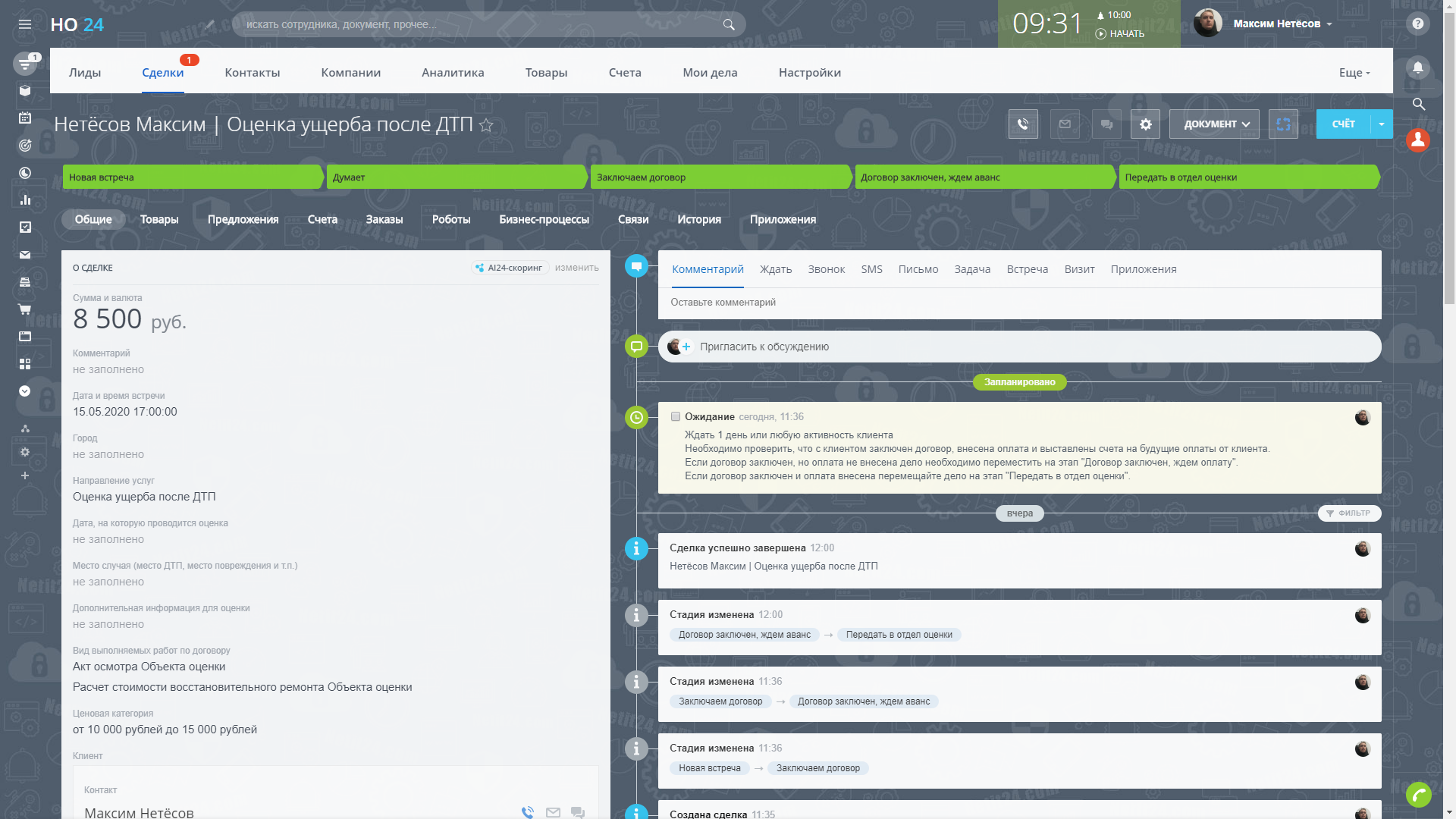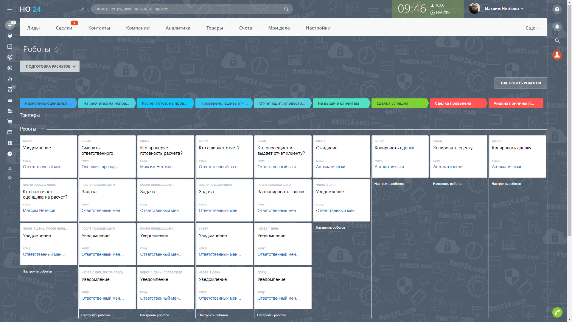 - система сама ставит задачи сотрудникам на каждом этапе работы с клиентом;