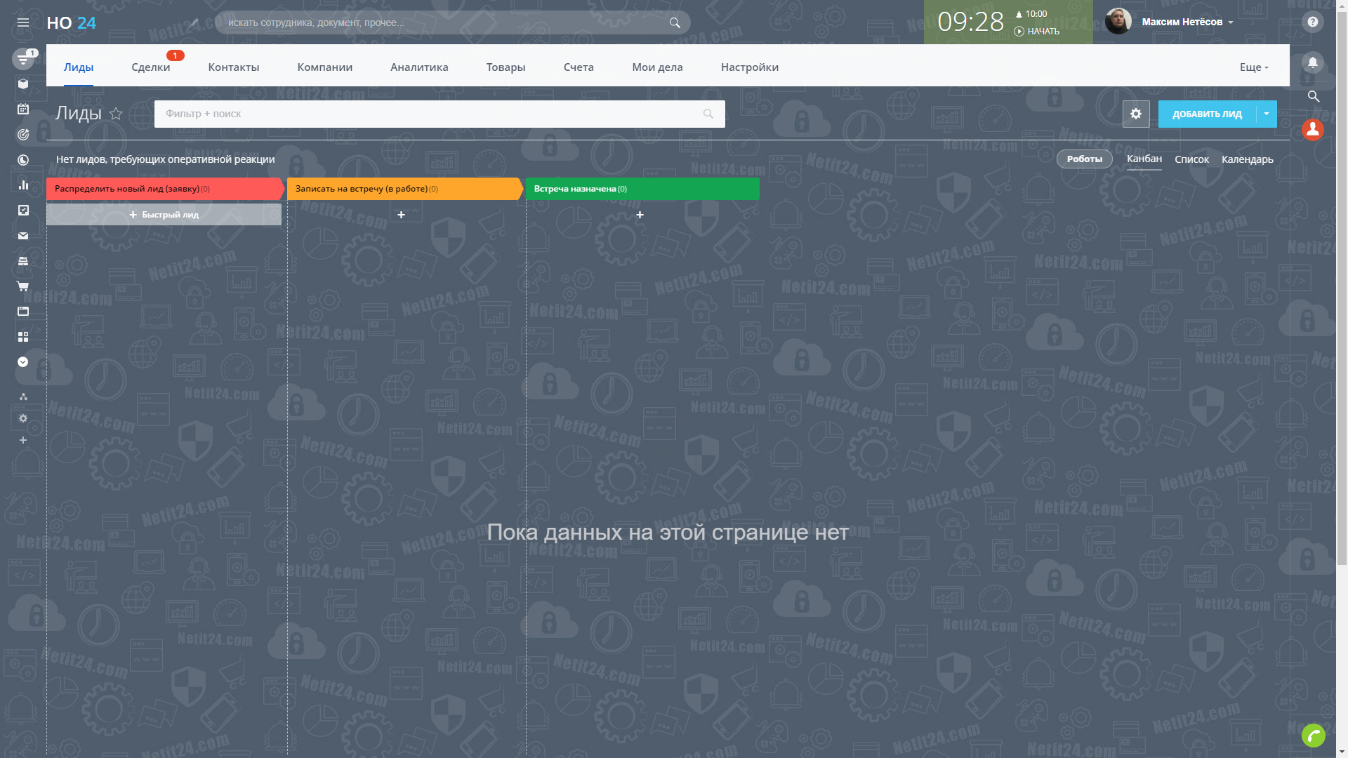 - Доступны Лиды (стадии - "Распределить Новый лид (заявку)", "Записать на встречу (в работе)", "Встреча назначена") - у Вас фиксируются все обращения клиентов, а также Вы контролируете как ведется работа с данными обращениями до момента встречи с клиентом или отказа клиента;