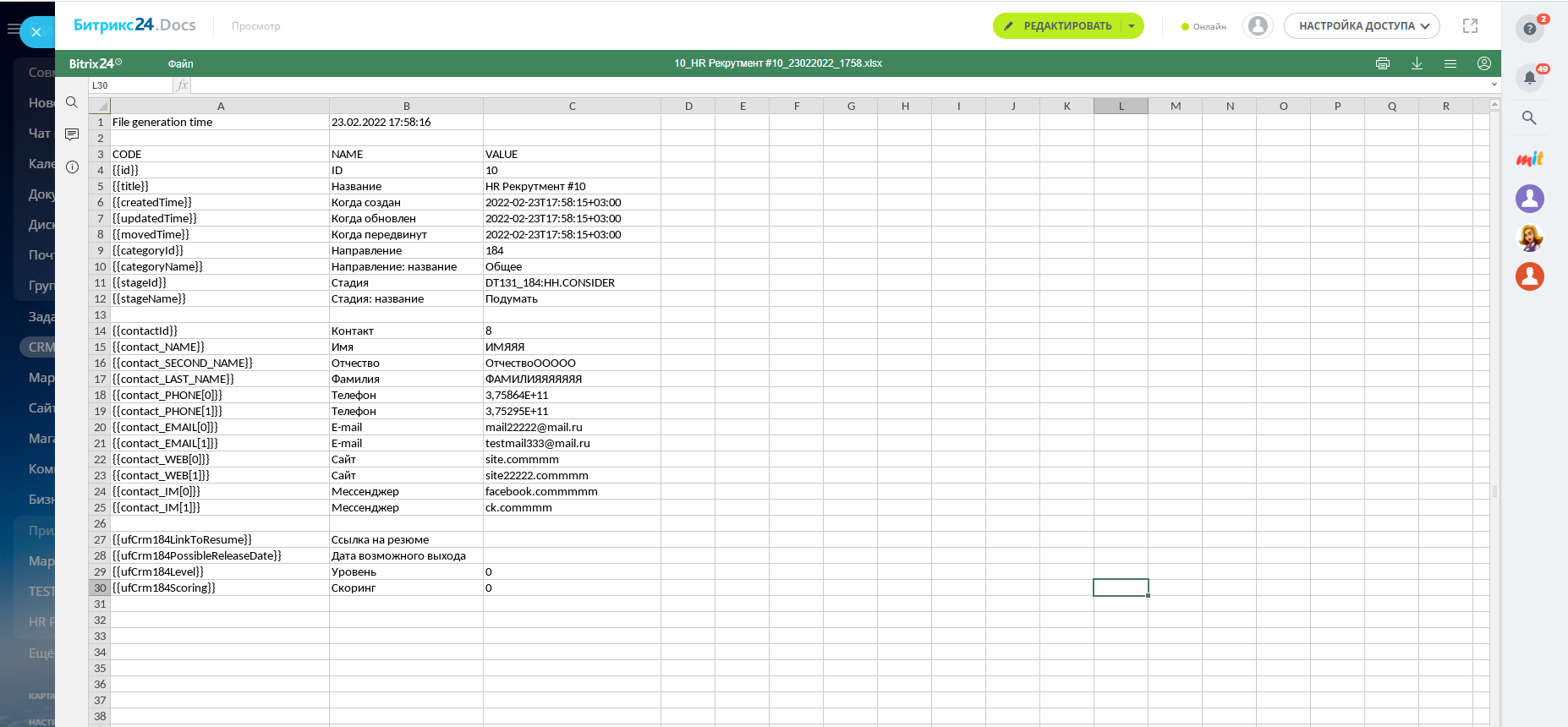 Генерация xlsx таблицы из полей элемента смарт-процесса