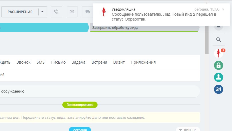 для уведомлений, сбора информации внутри CRM или оповещения сотрудников.
