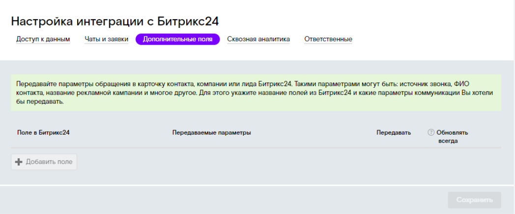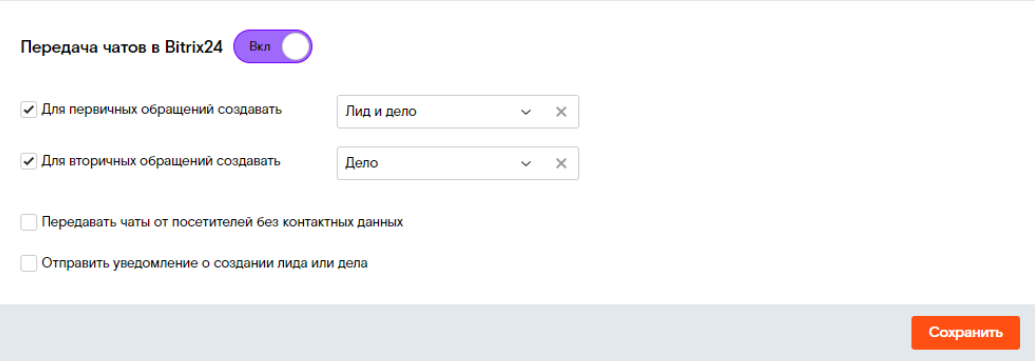 Интеграция с CRM Битрикс24 предоставляется в рамках Интеграционного пакета.