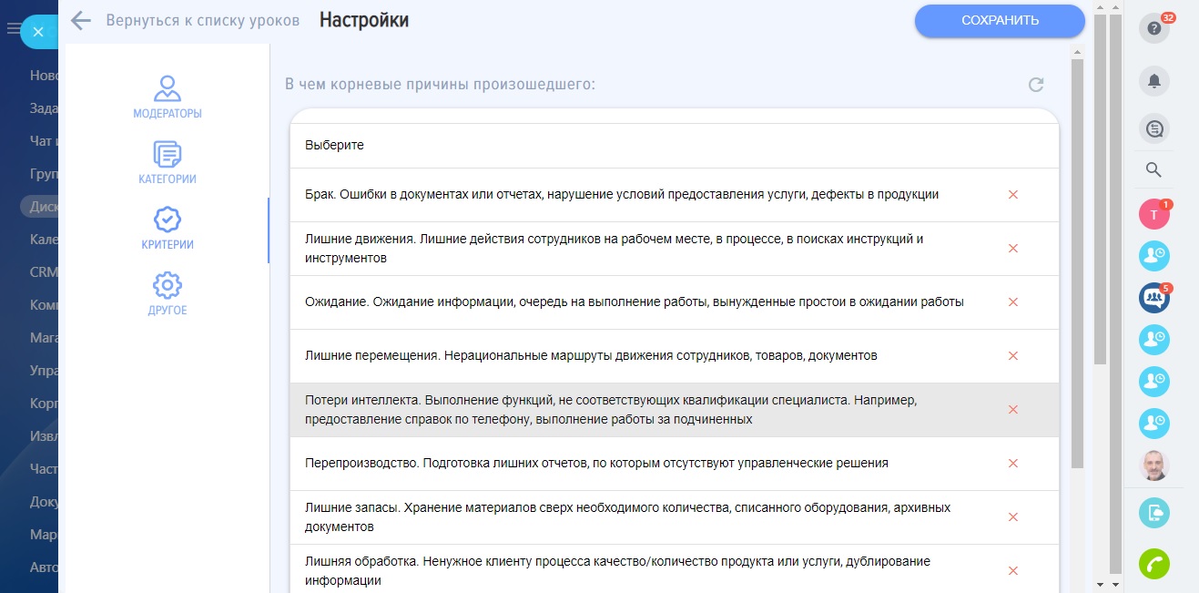 - Встроенная система анализа первопричин на основе концепции бережливого производства.